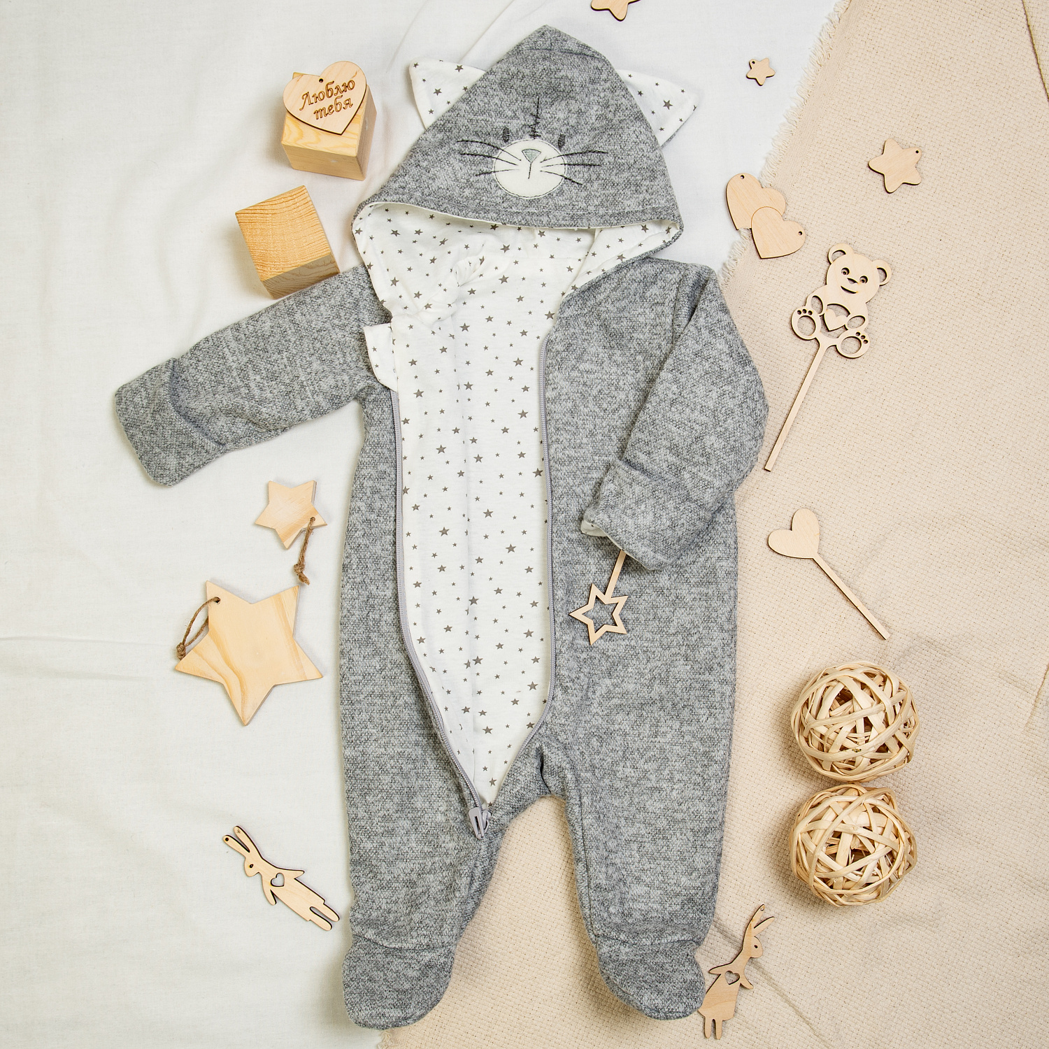 Комбинезон с капюшоном на второй и третий слой для повседневных прогулок. Подойдёт для нарядных поездок к бабушке, для красивых фотосессий, для подарка на Новый год 2023 - год кролика(кота)!