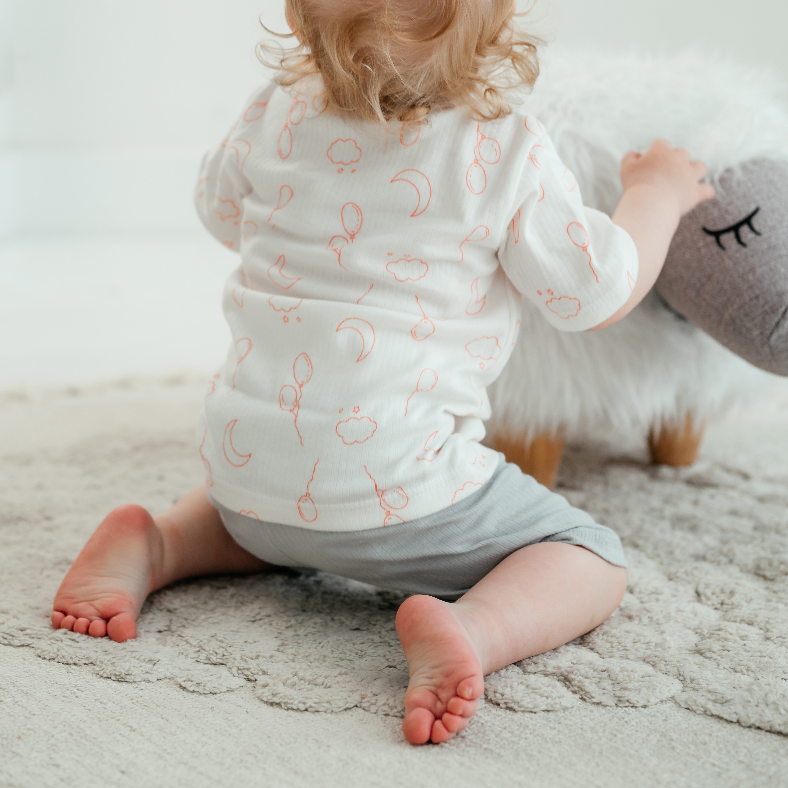 Футболка с двумя кнопочками на плече для удобства продевания головы ребёнка. Рукава короткие. Горловина окантована.
