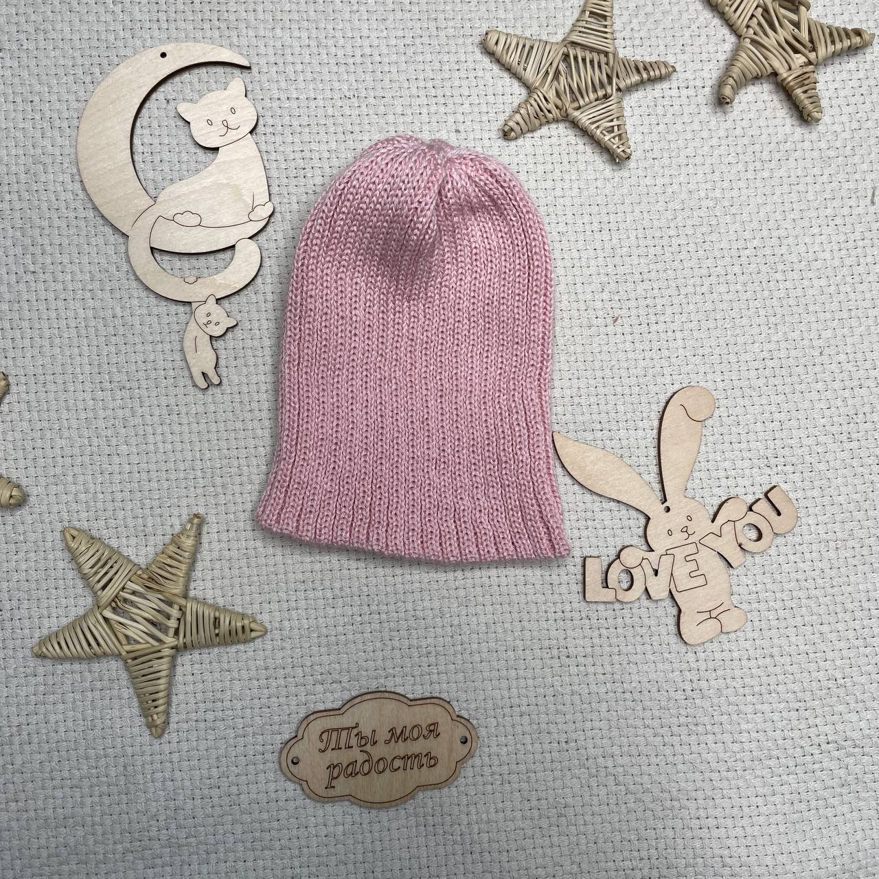 Б-295 Шапочка детская в стиле "Бини". вязаная. р.0-3 мес, розовый