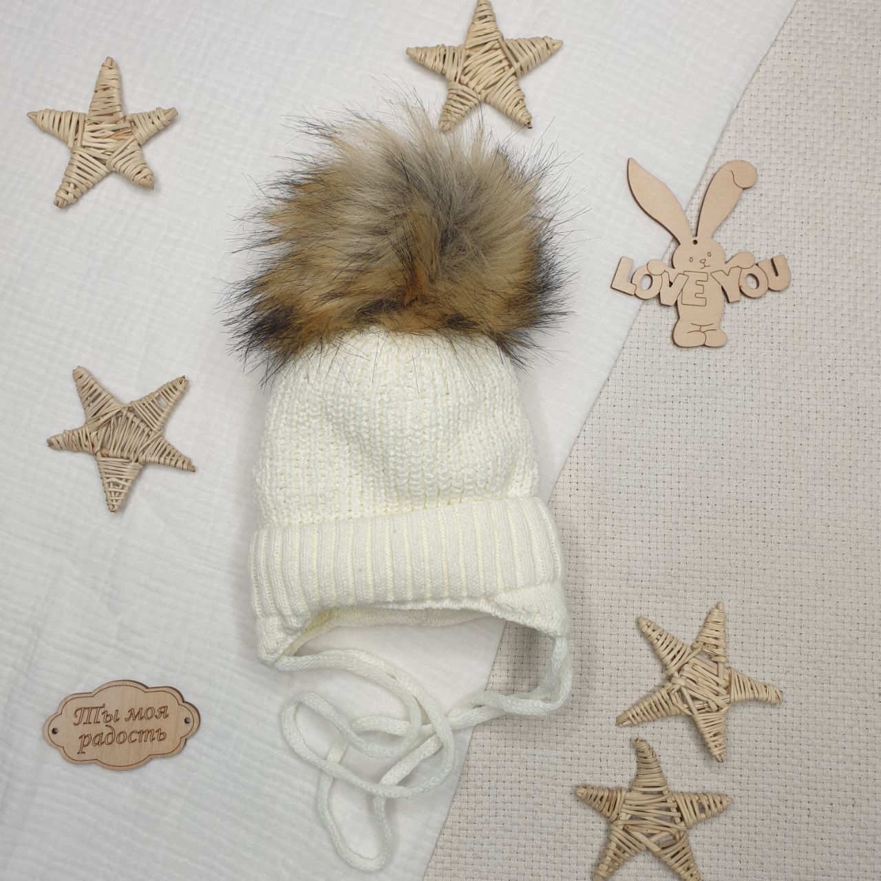 Б-298 Шапочка вязаная с понпоном молочный