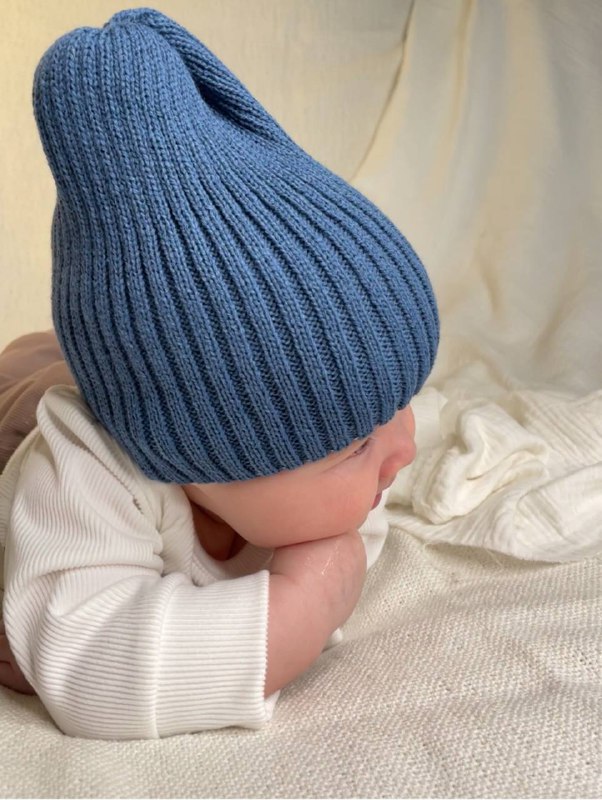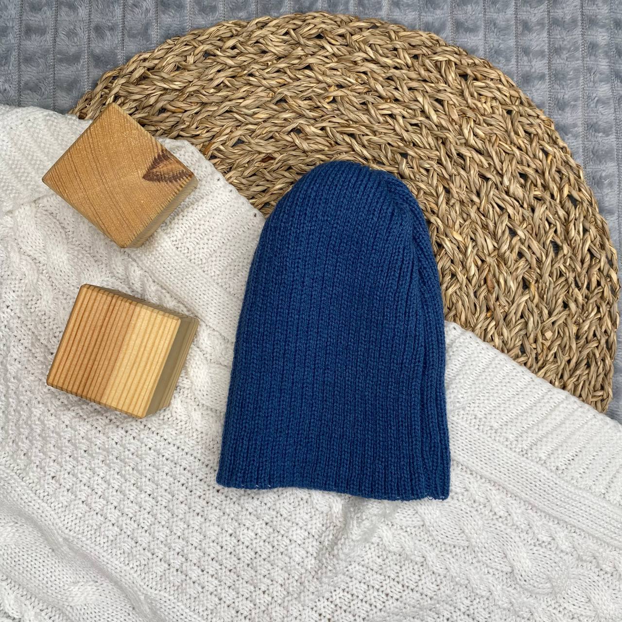 Б-299 Шапочка детская в стиле "Бини". вязаная. полушерсть, джинс