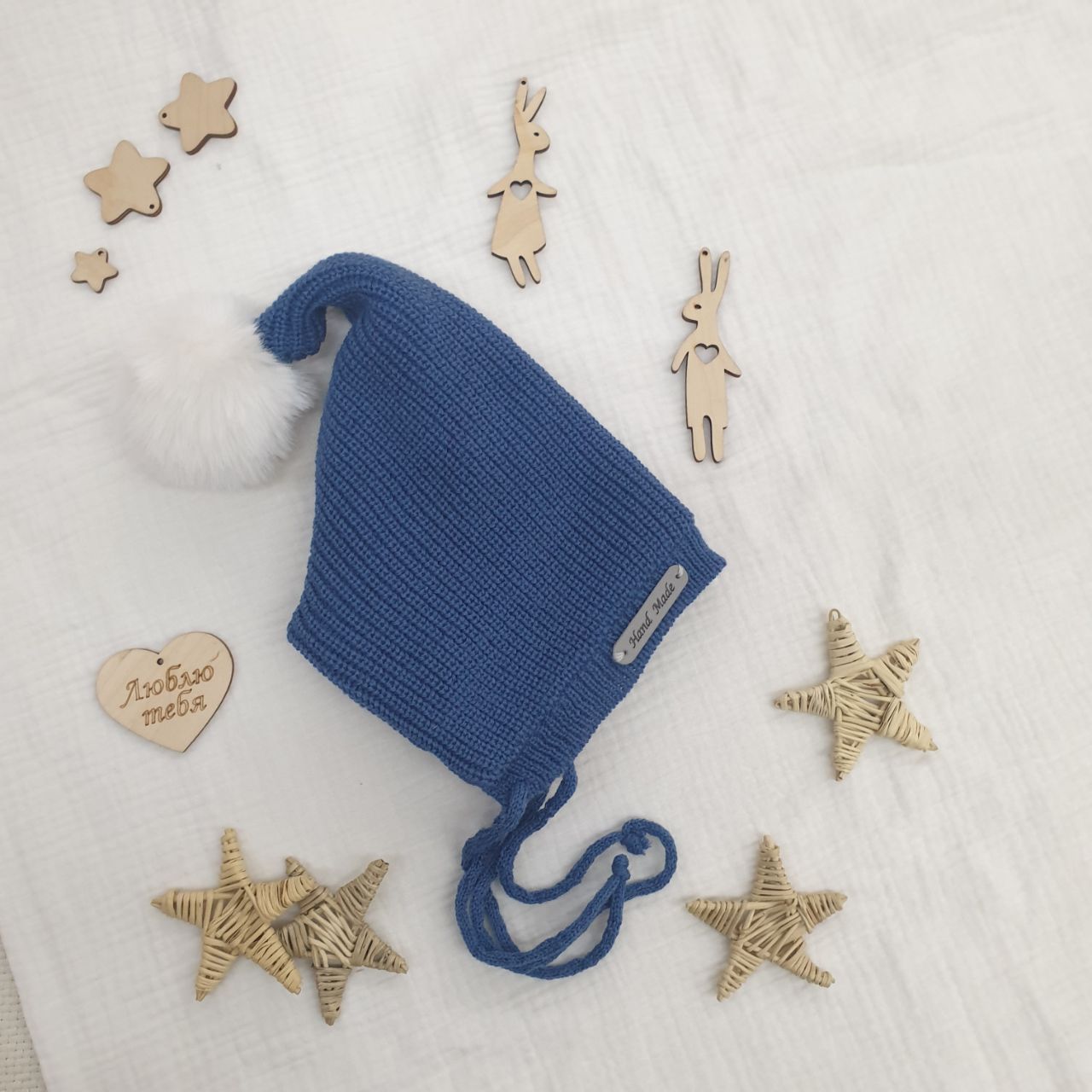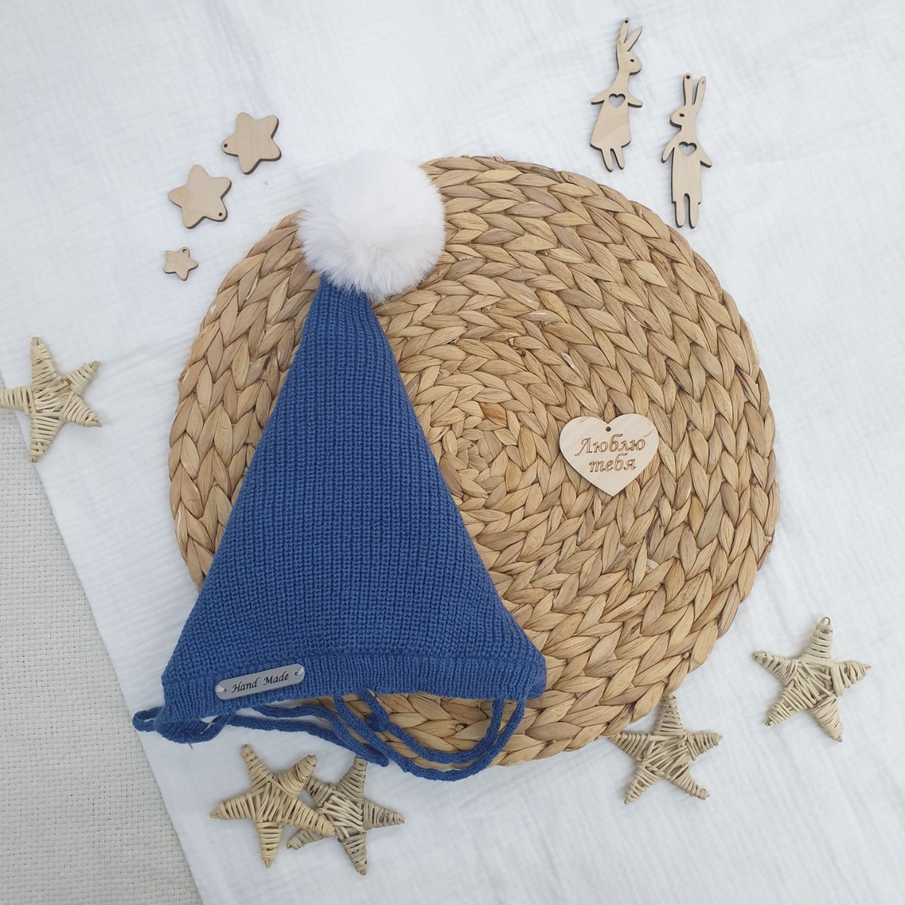 Б-300 Шапочка вязаная с помпоном "Гномик" синяя