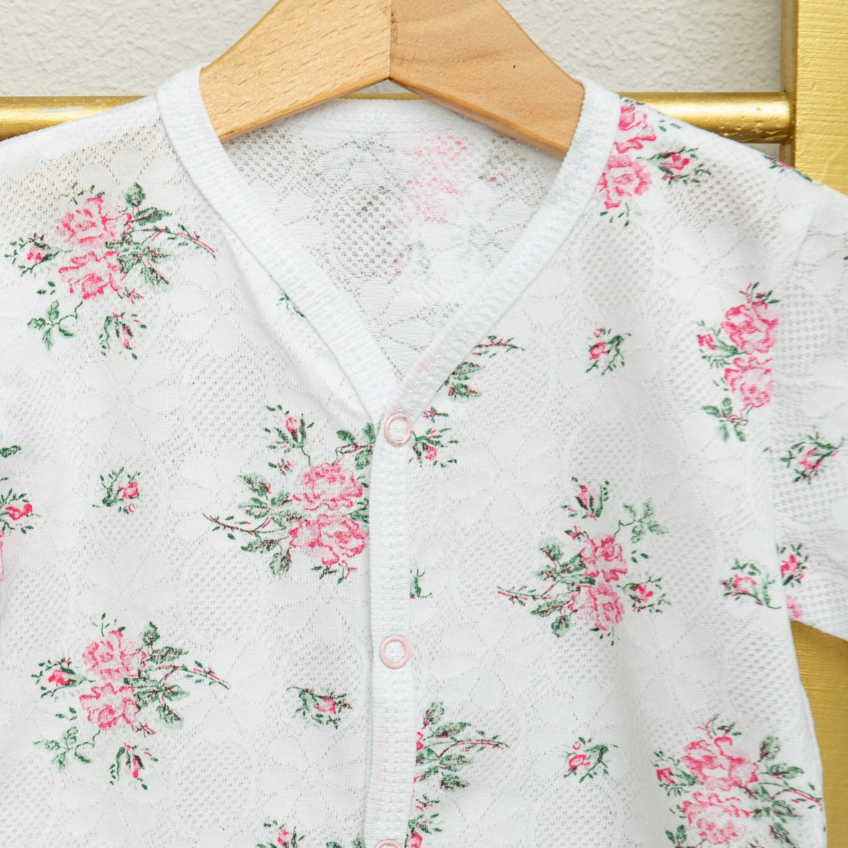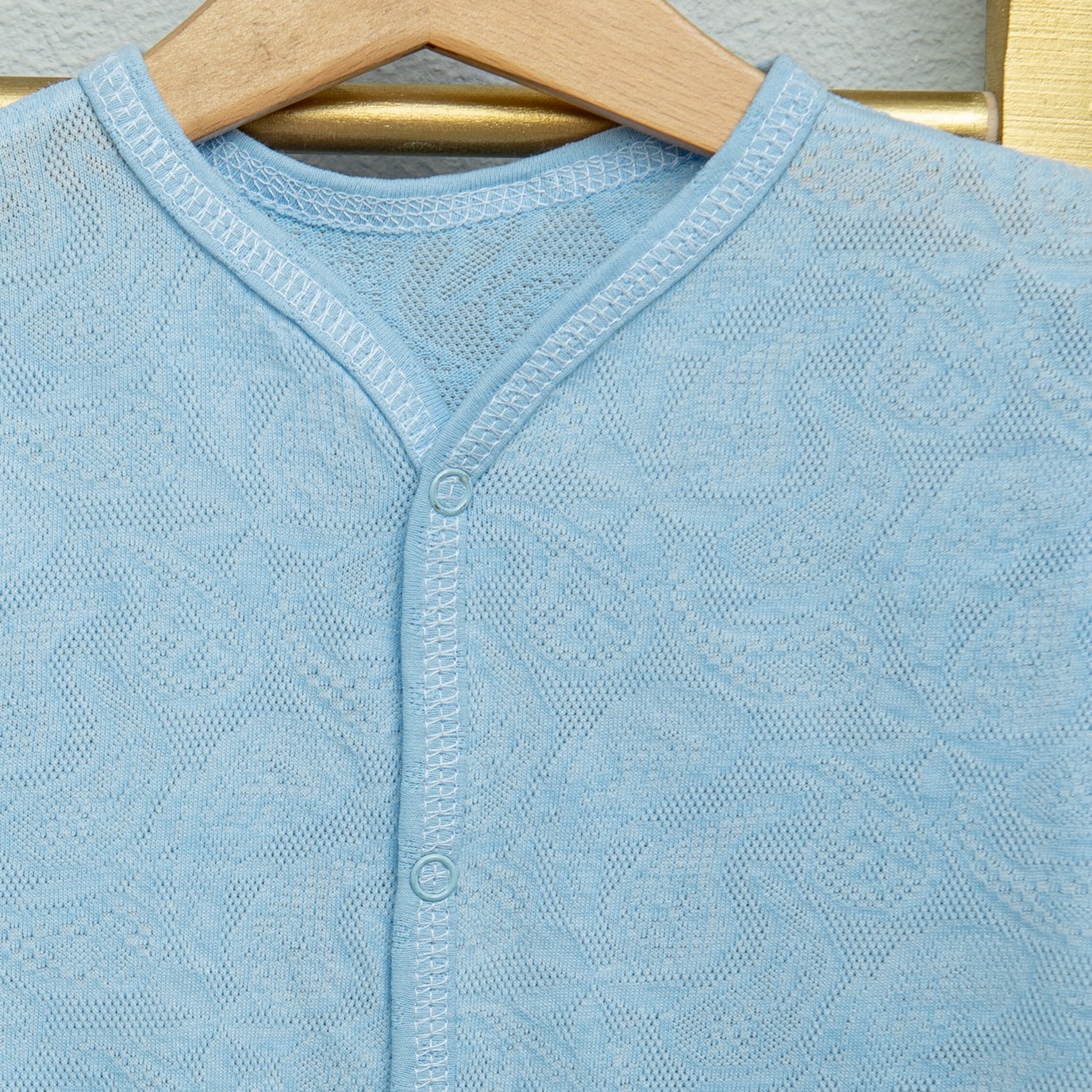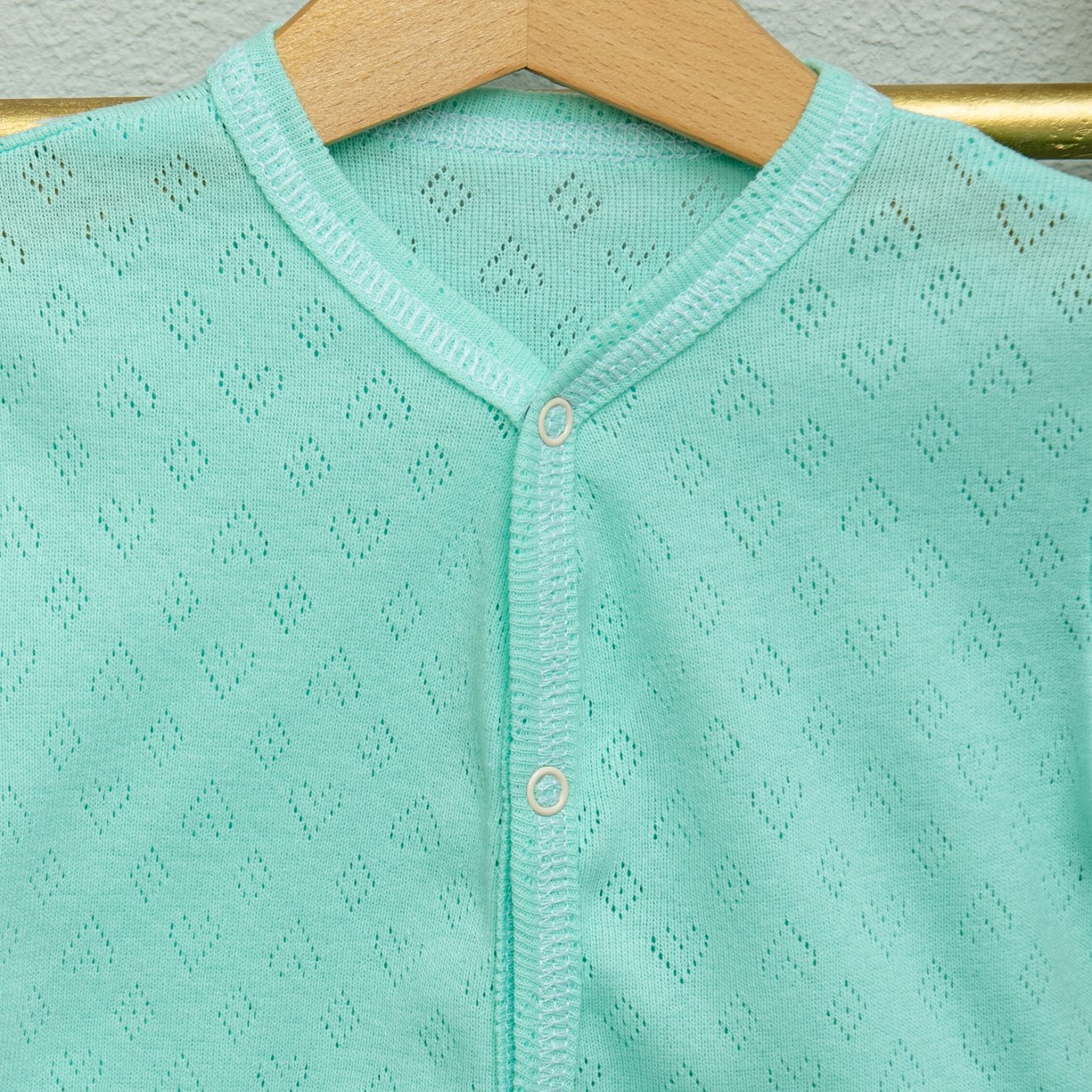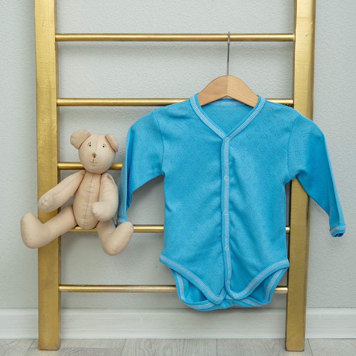 Нежные боди для малышей из ажурного хлопкового трикотажа. Боди с длинным рукавом. Застёжка на кнопочки по переду полностью открывает боди, позволяя удобно и быстро одевать малыша.