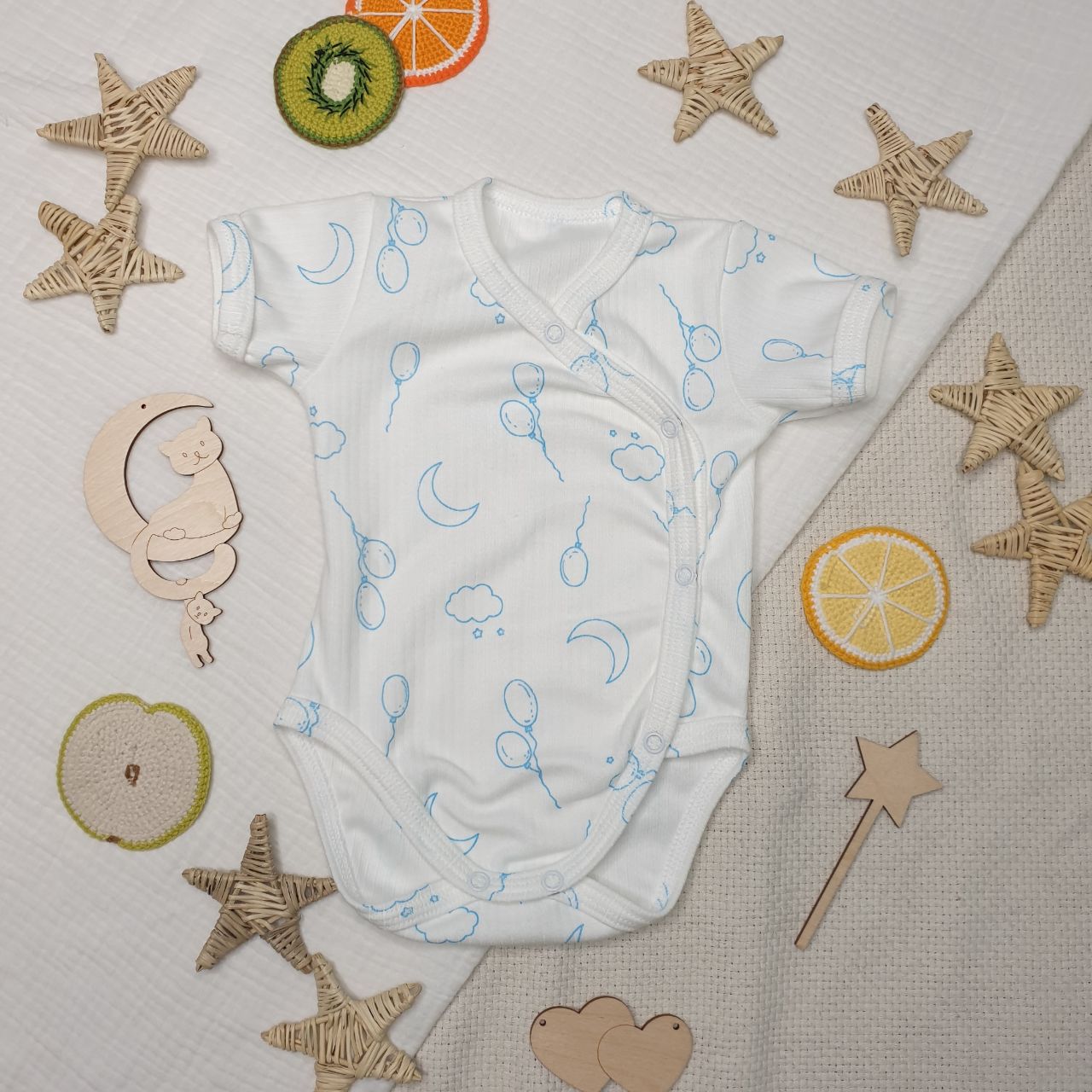 Боди из интерлока с набивным рисунком шарик на 8-и кнопках, короткий рукав.