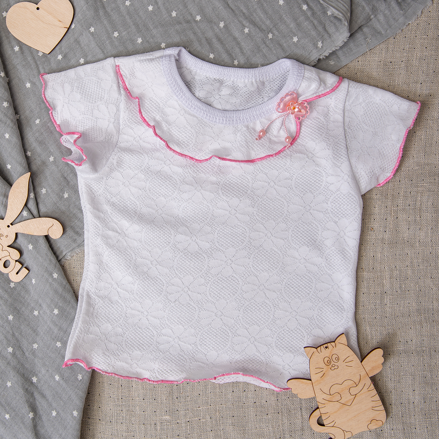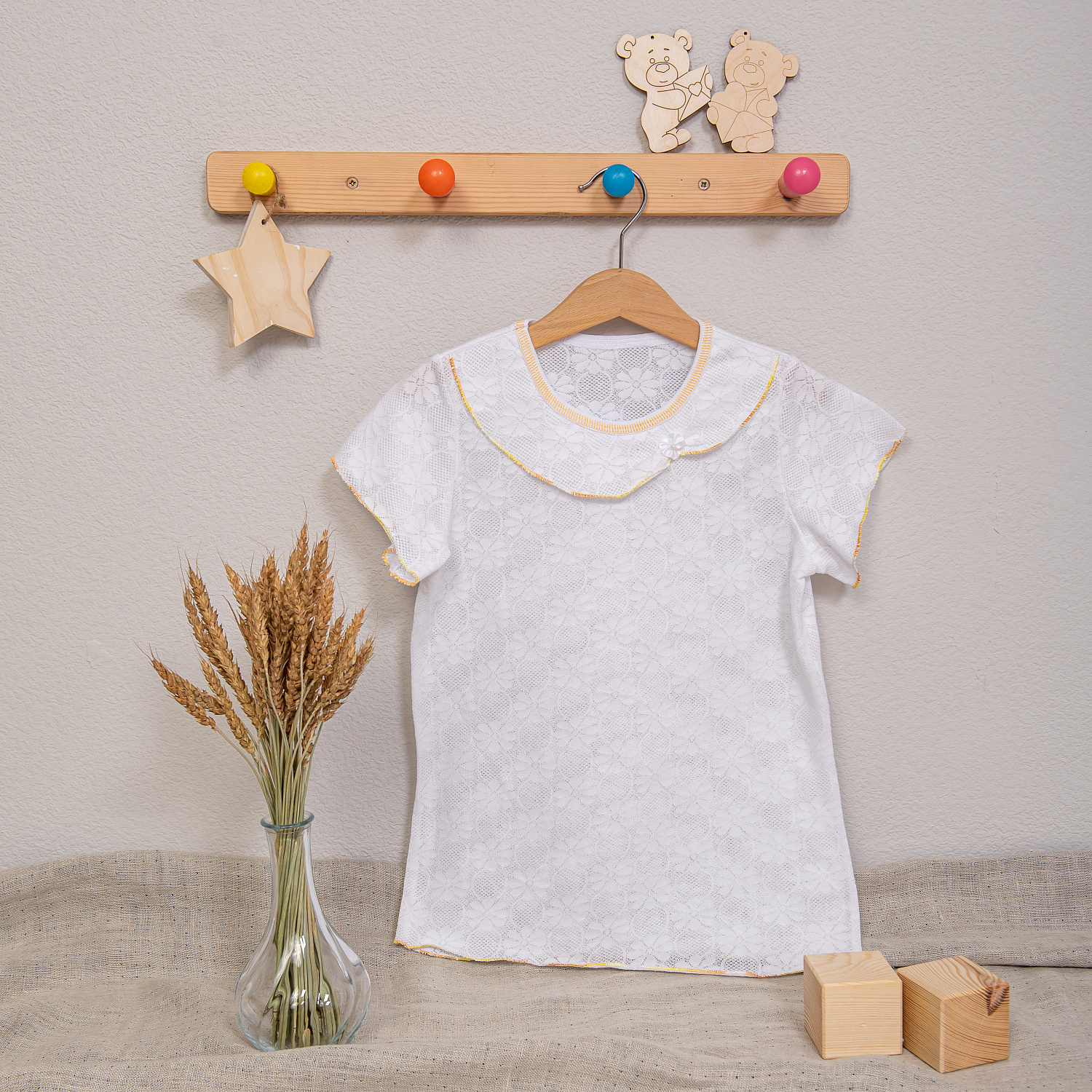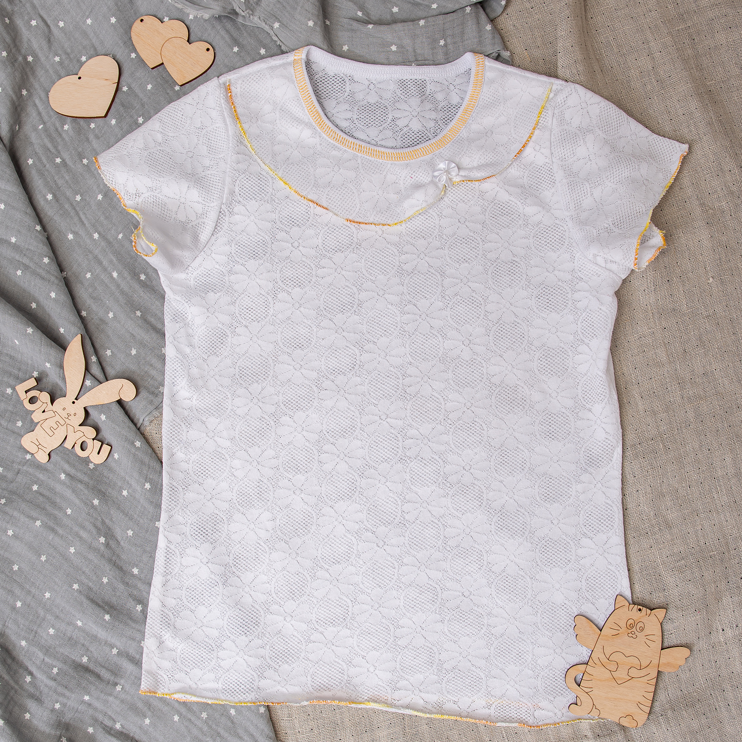 Легкая и удобная футболка для девочки из ажурного белого трикотажа.