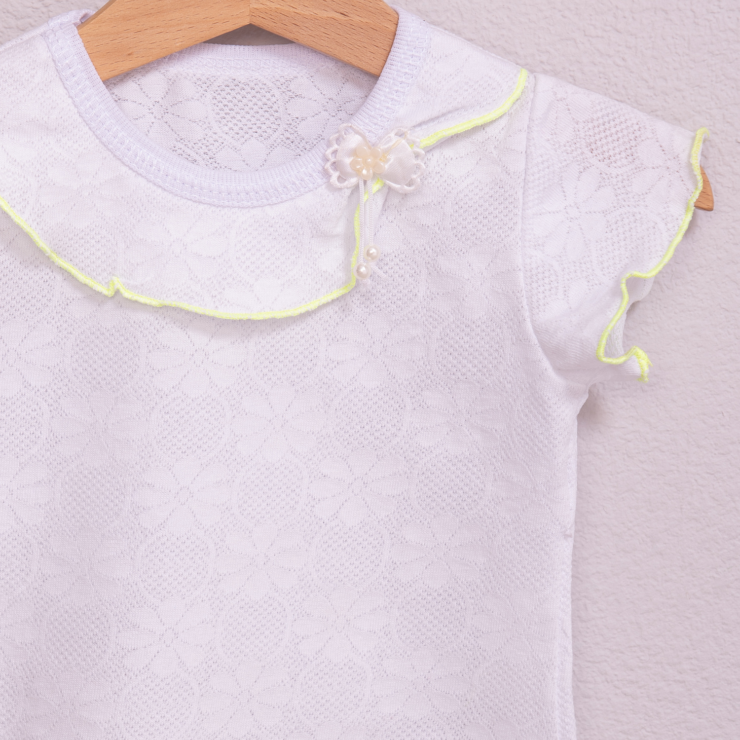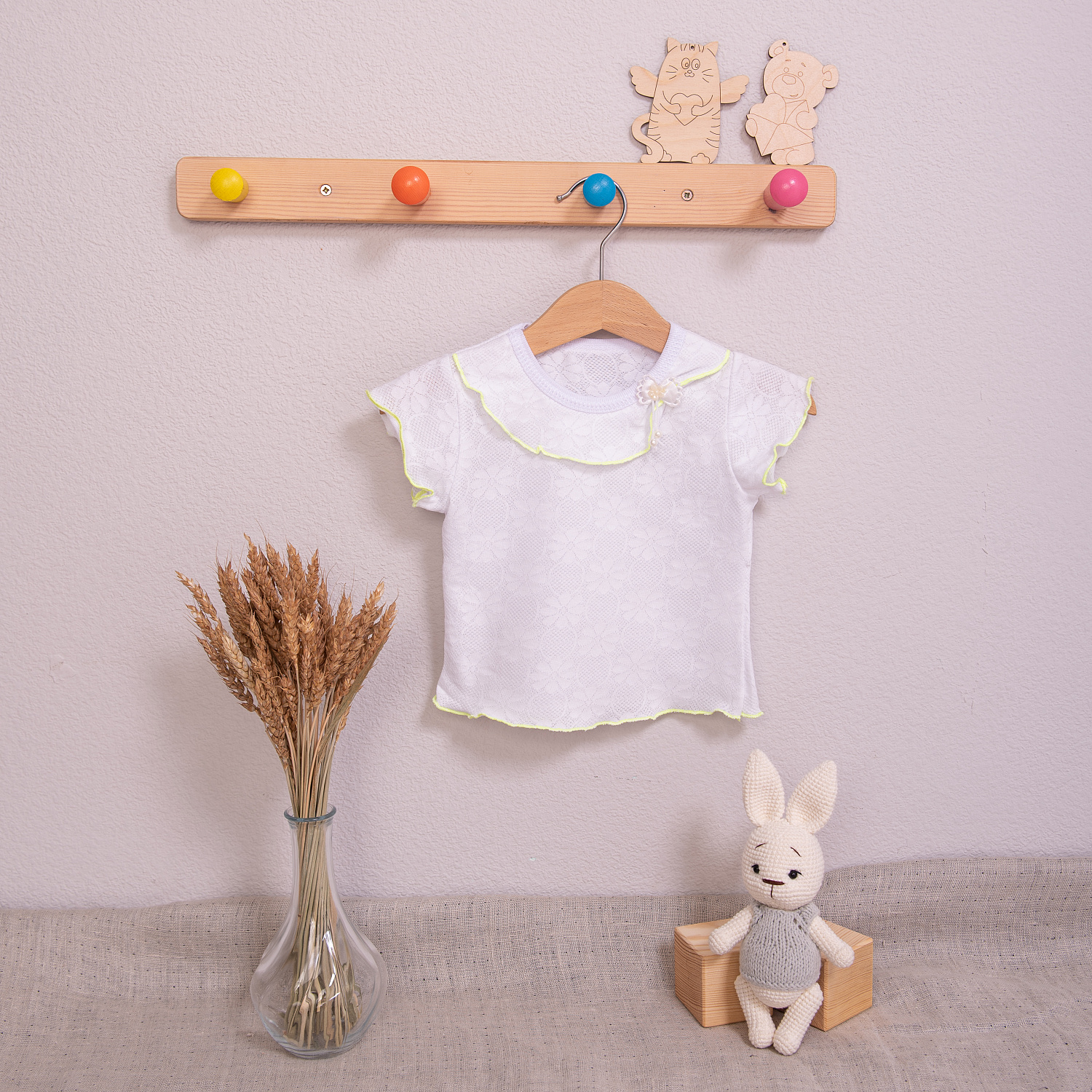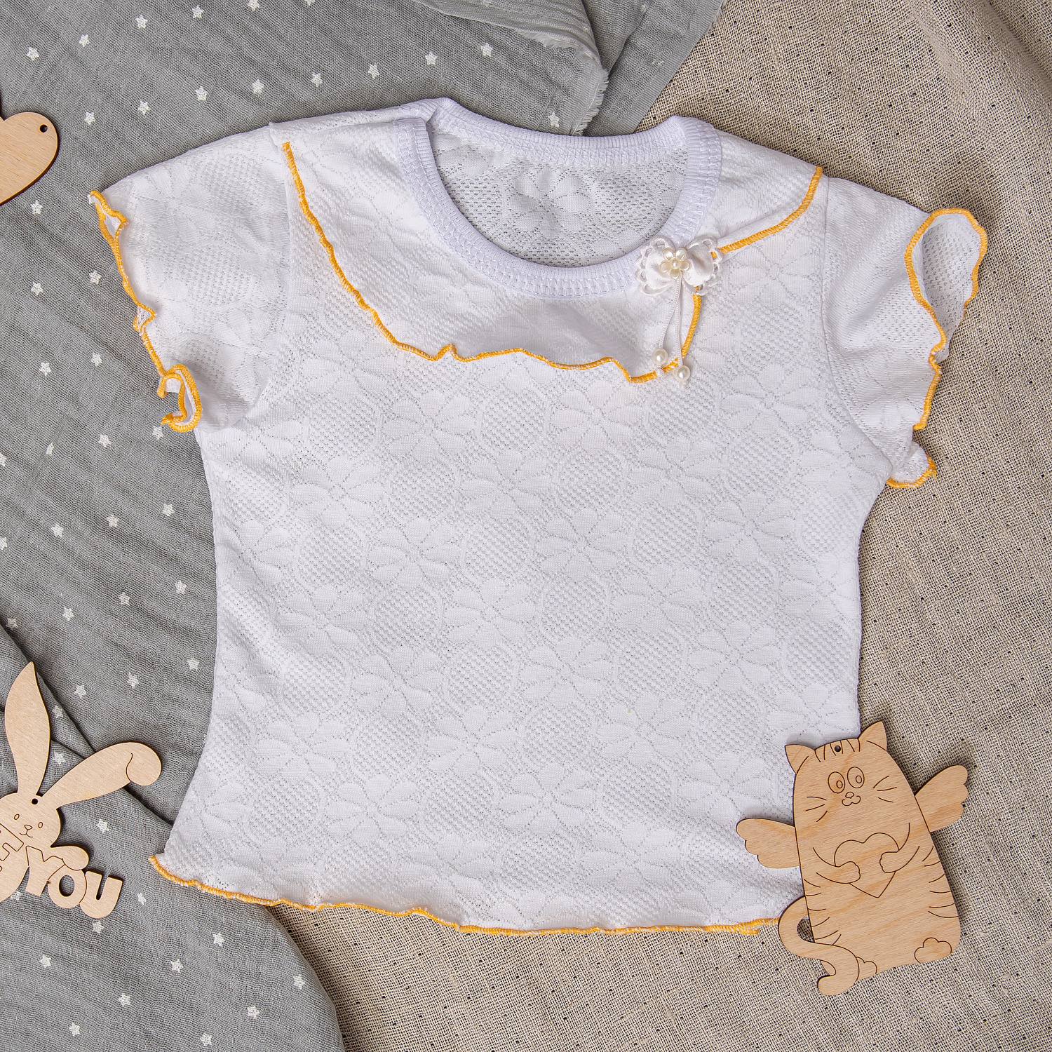 Легкая и удобная футболка для девочки из ажурного белого трикотажа.