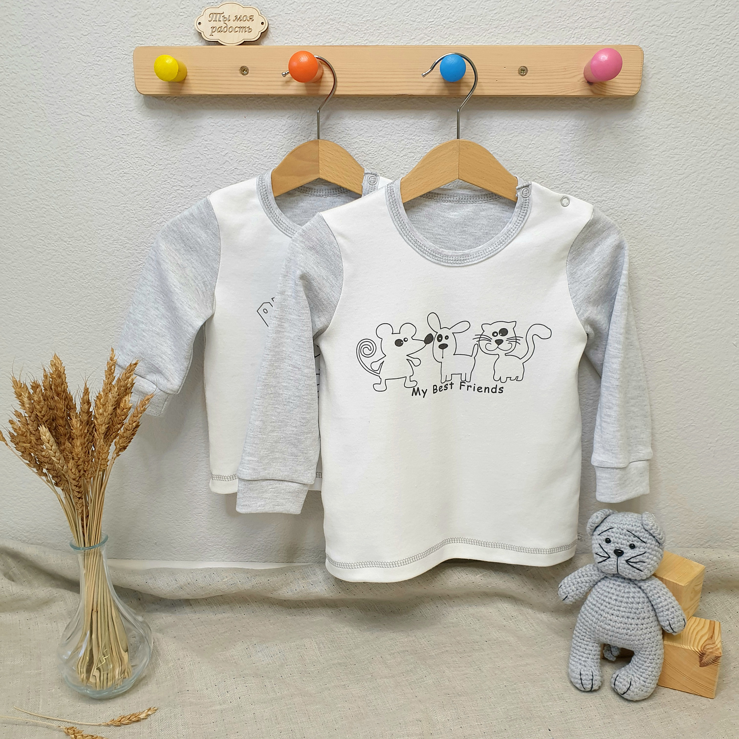 Лонгслив детский. Длинный рукав c манжетой. Две кнопки на плече.