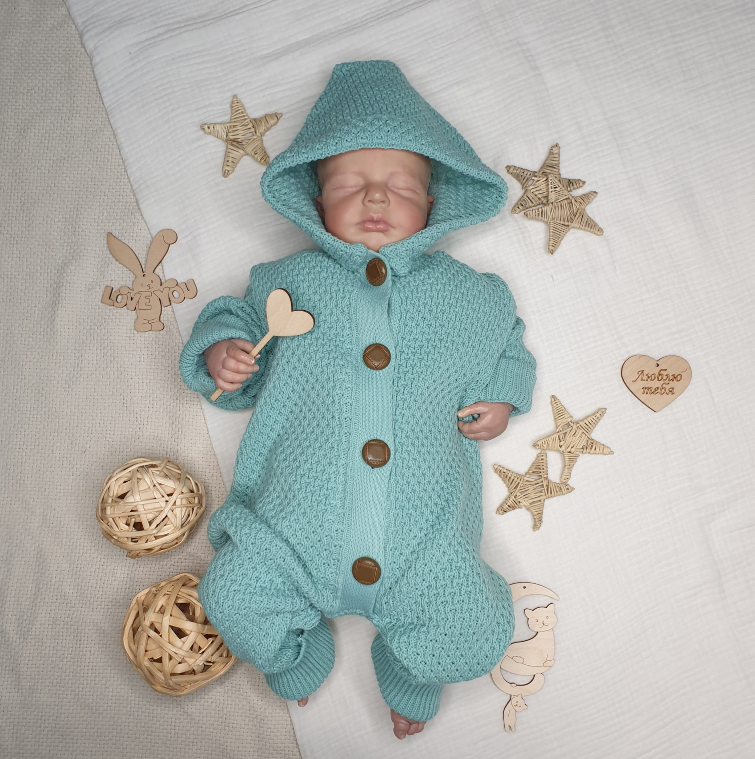 Можно сочетать с нашими вязанными пледиками и шапочками.