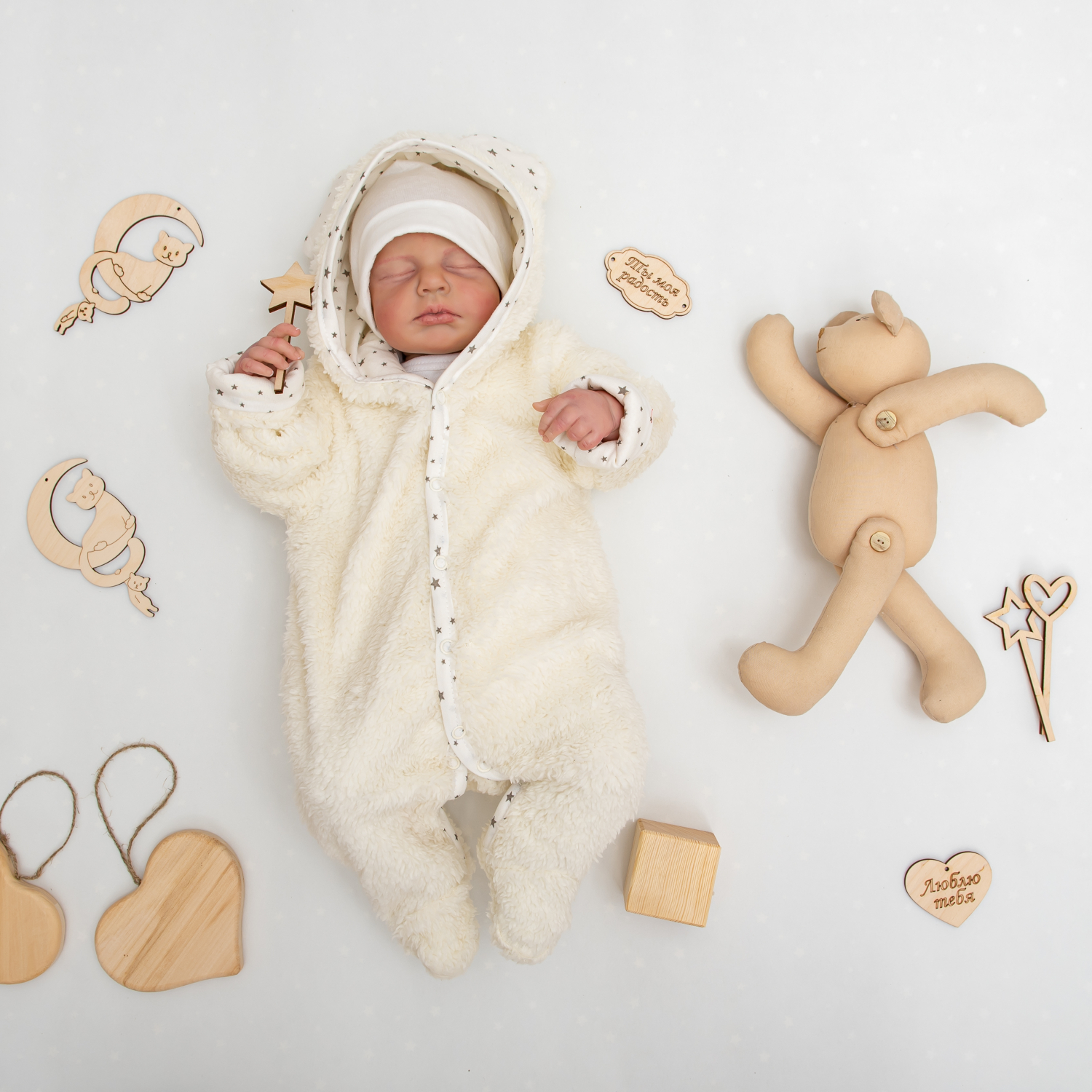 Мягкий уютный комбинезон для самых маленьких! Нейтральный молочный цвет подойдёт и мальчику, и девочке.