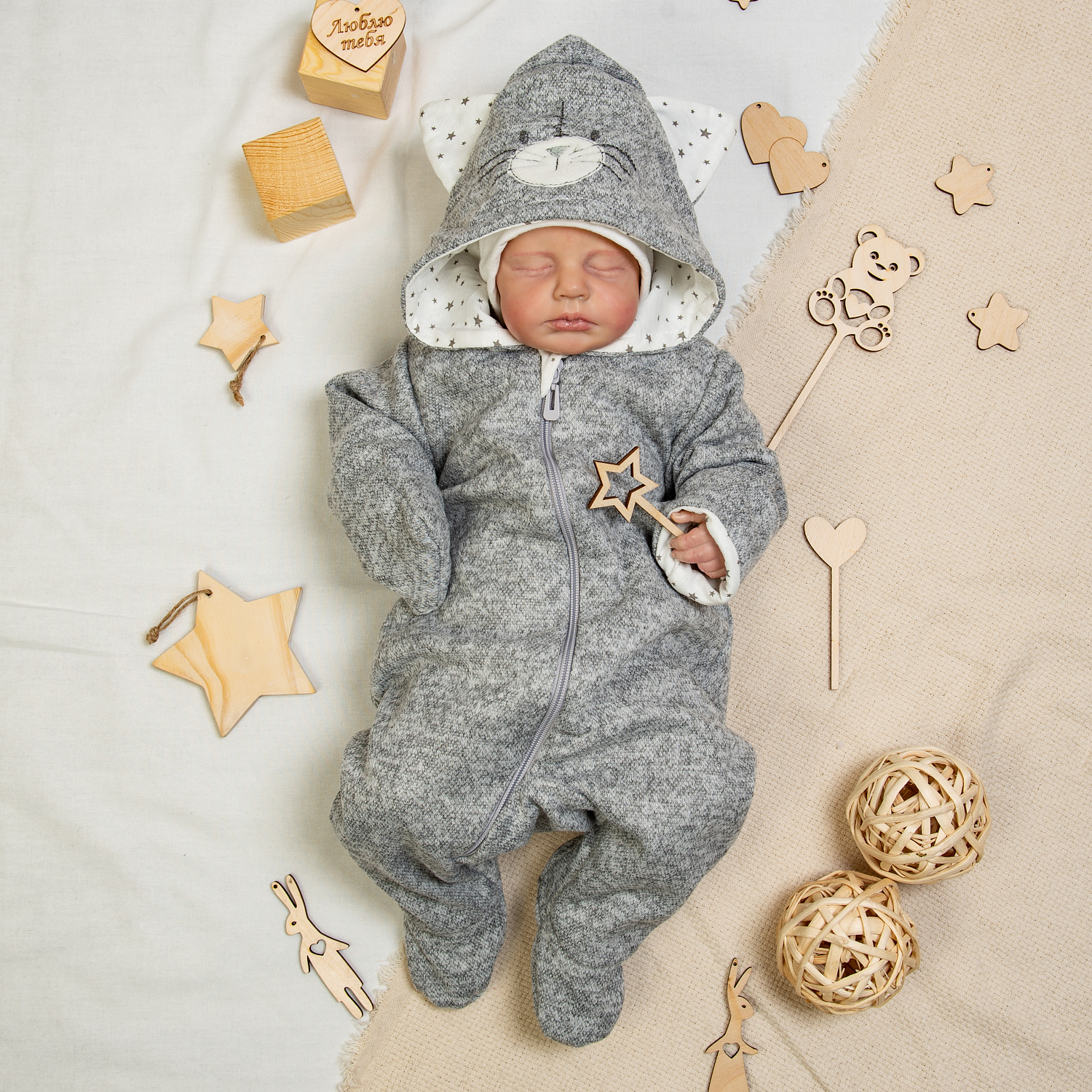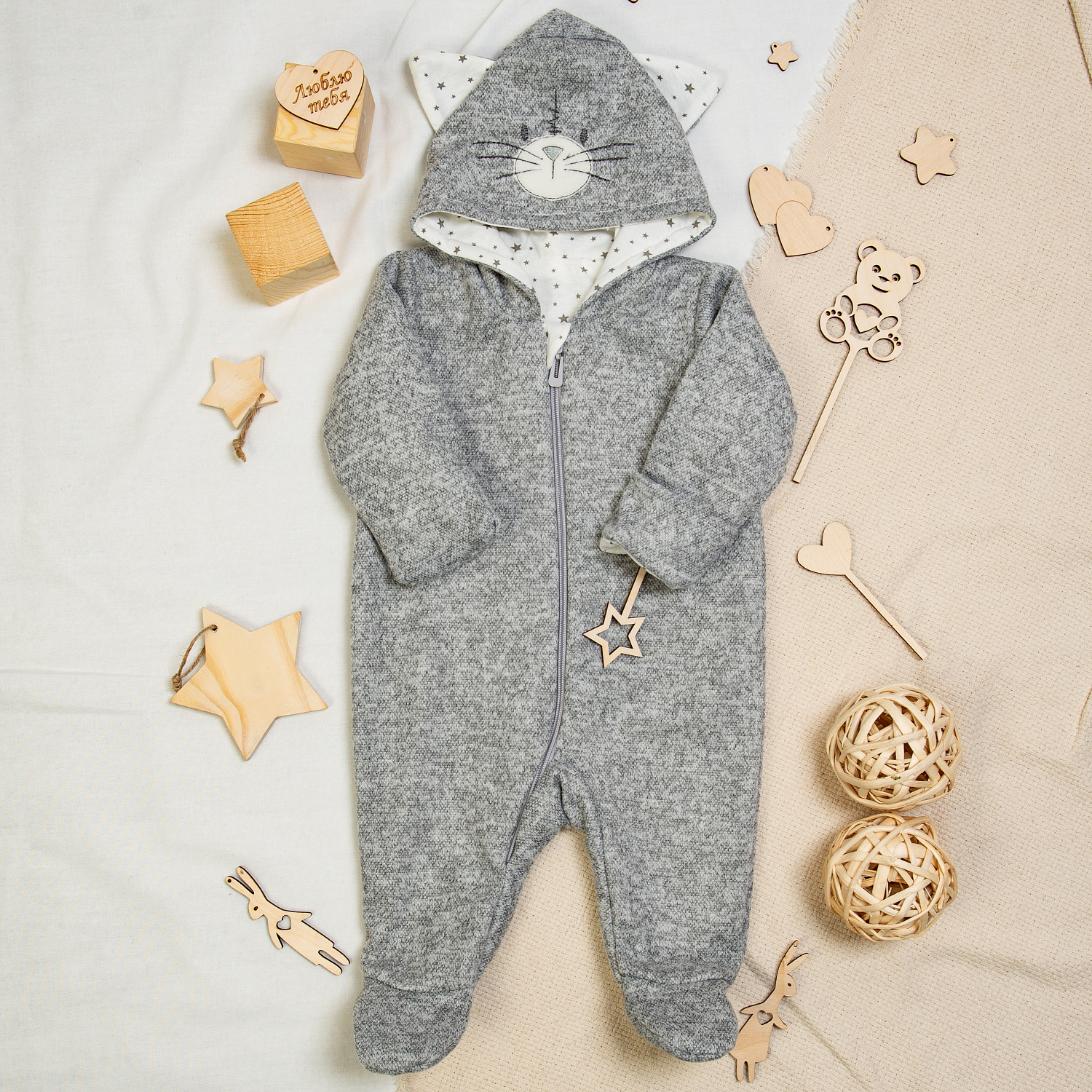 Комбинезон с капюшоном на второй и третий слой для повседневных прогулок. Подойдёт для нарядных поездок к бабушке, для красивых фотосессий, для подарка на Новый год 2023 - год кролика(кота)!