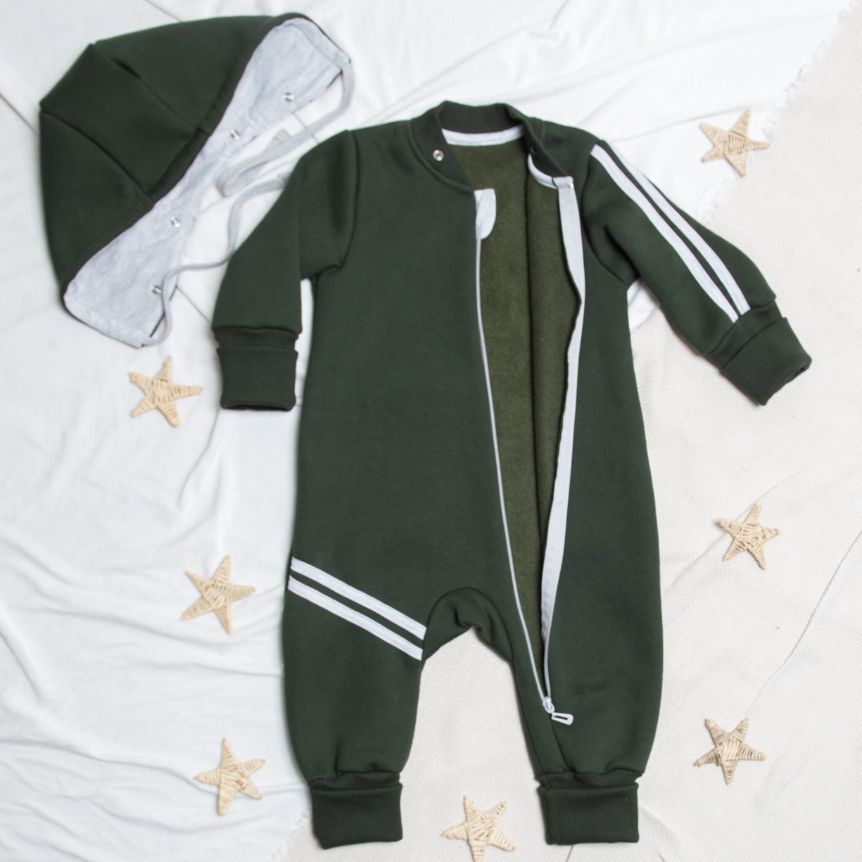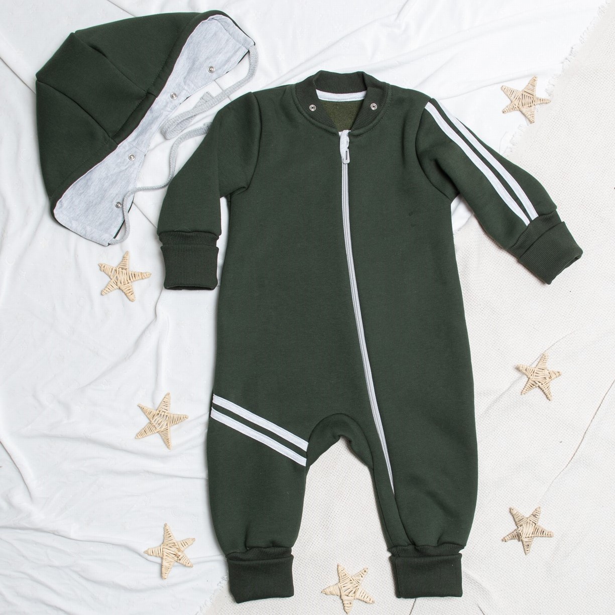 Комбинезон "Вырастайка" из футера с начёсом, арт.М-516, хаки