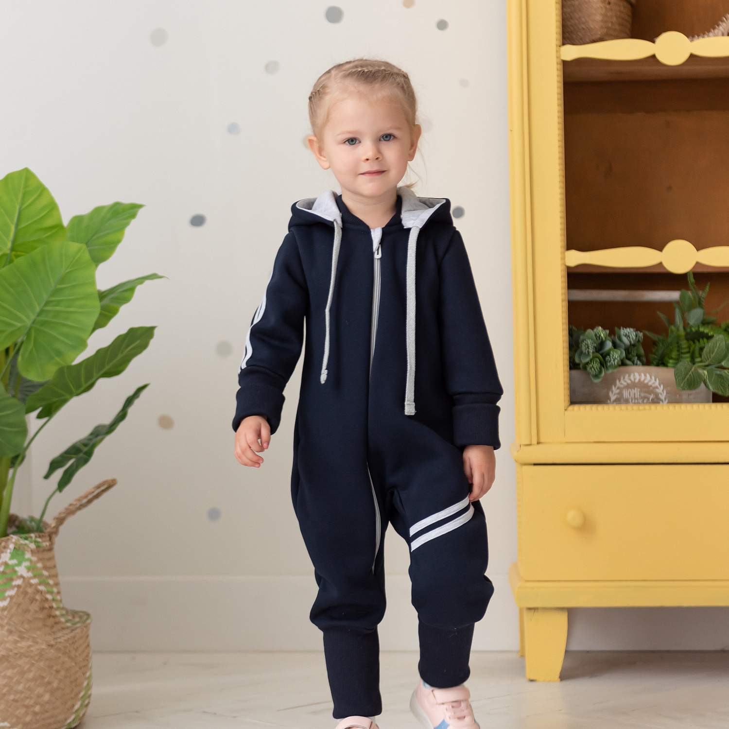 Комбинезон на длинной молнии, капюшон отстёгивается. Высокие эластичные манжеты с отворотами позволяют регулировать длину на рост ребёнка.