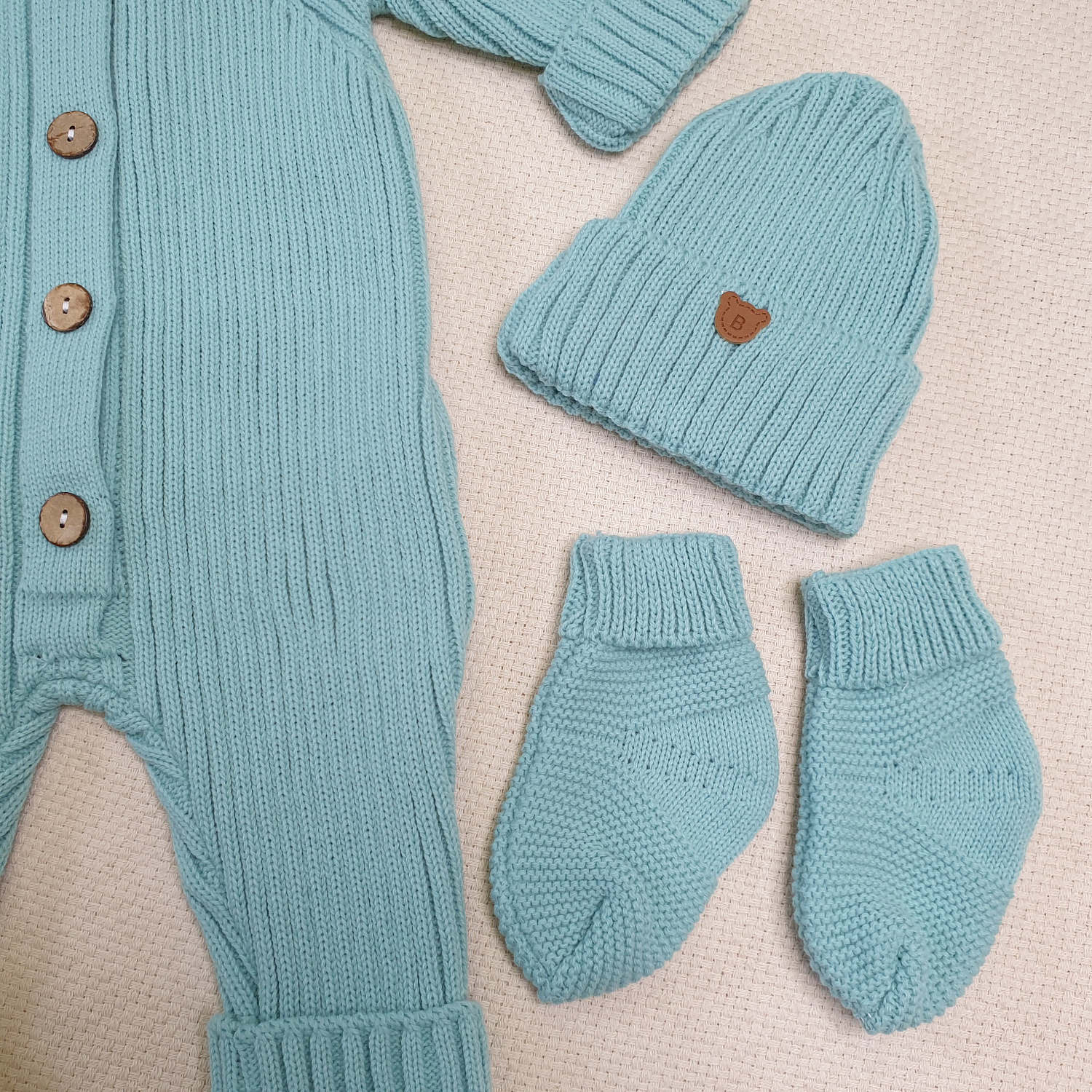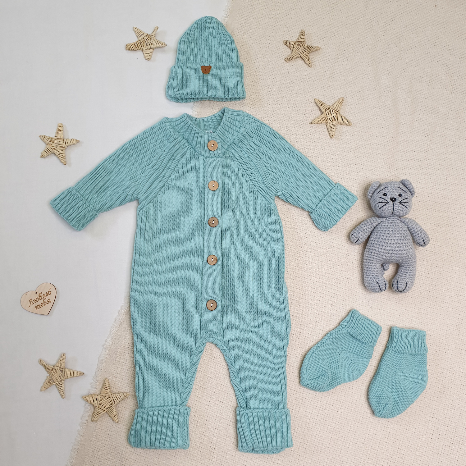 Комплект вязаный. Комбинезон, шапочка, носочки арт.КД-205, мятный