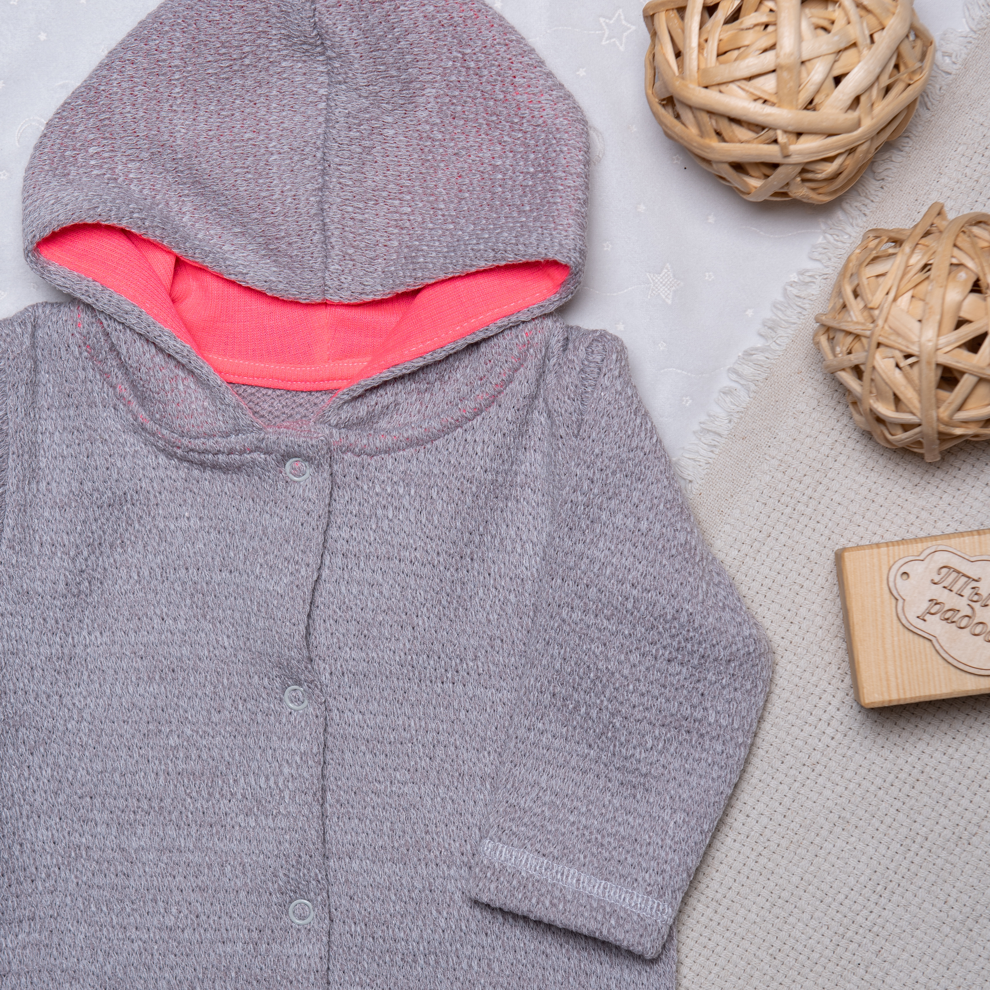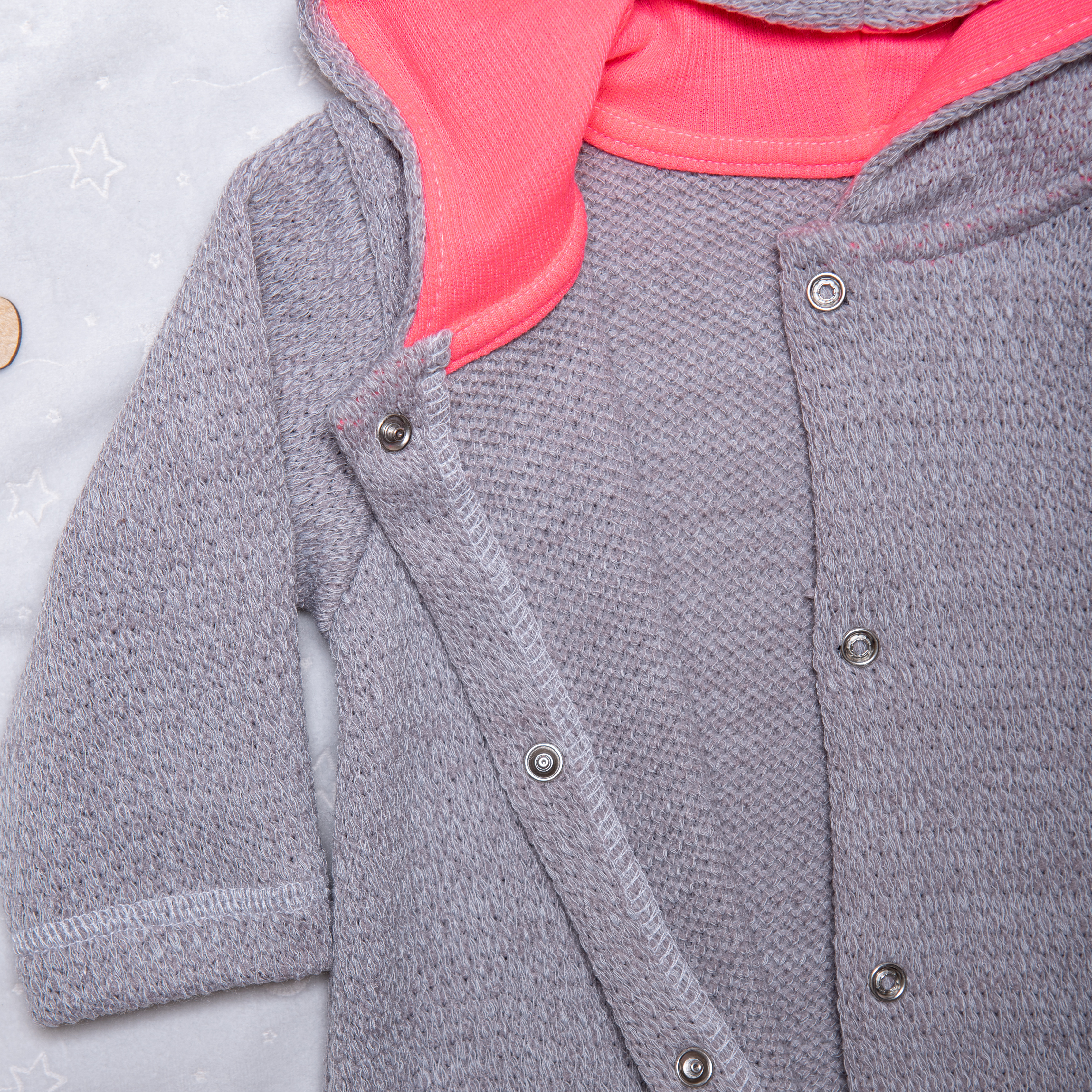 Комбинезон с капюшоном на подкладке из яркого кашкорсе. Ручки открытые, ножка также открытая, низ комбинезона с притачными манжетами.