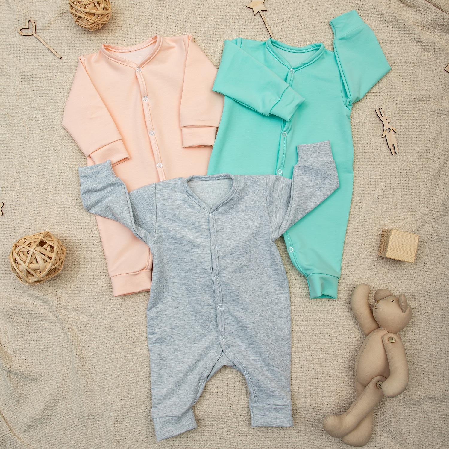 Цвета: мята, персик, серый меланж.