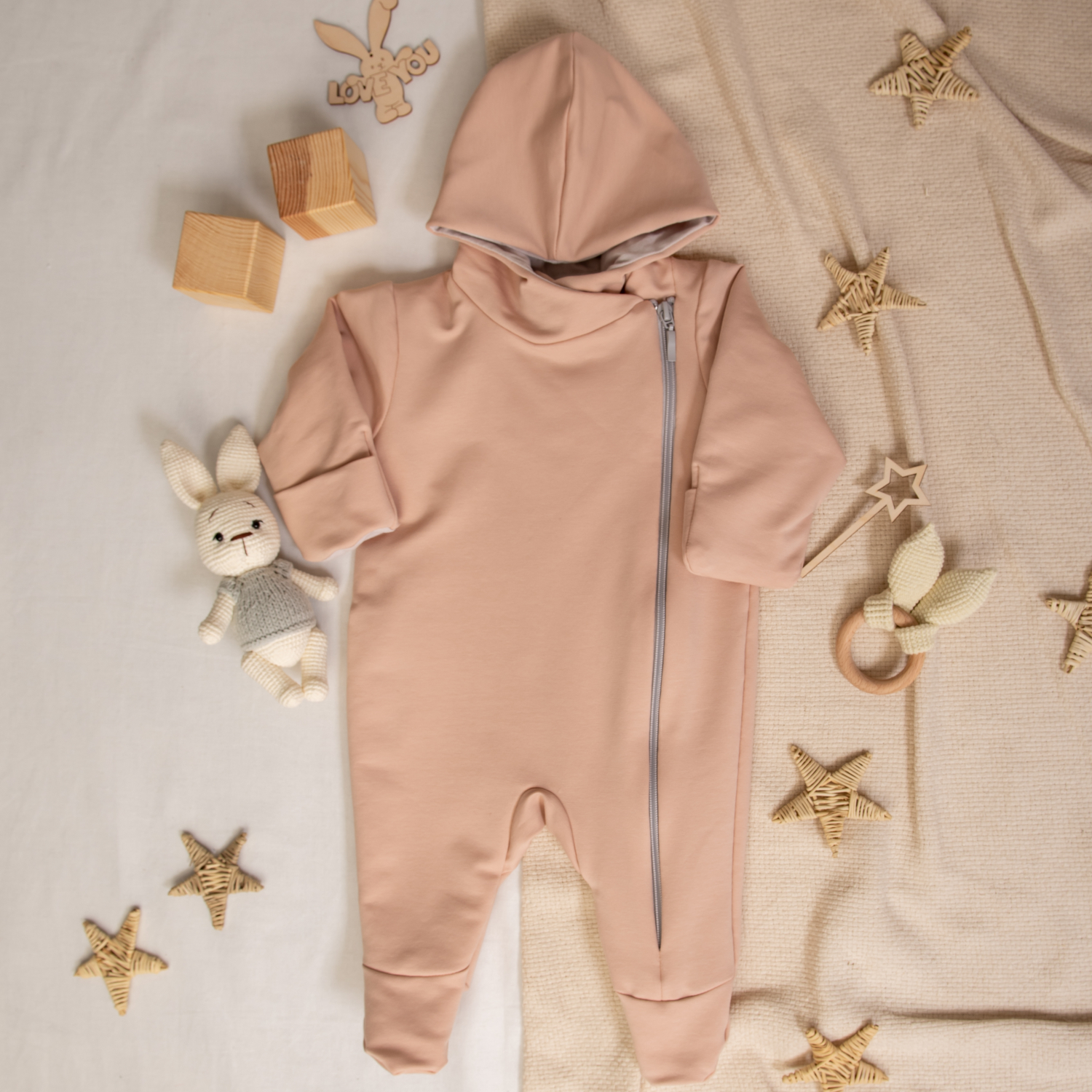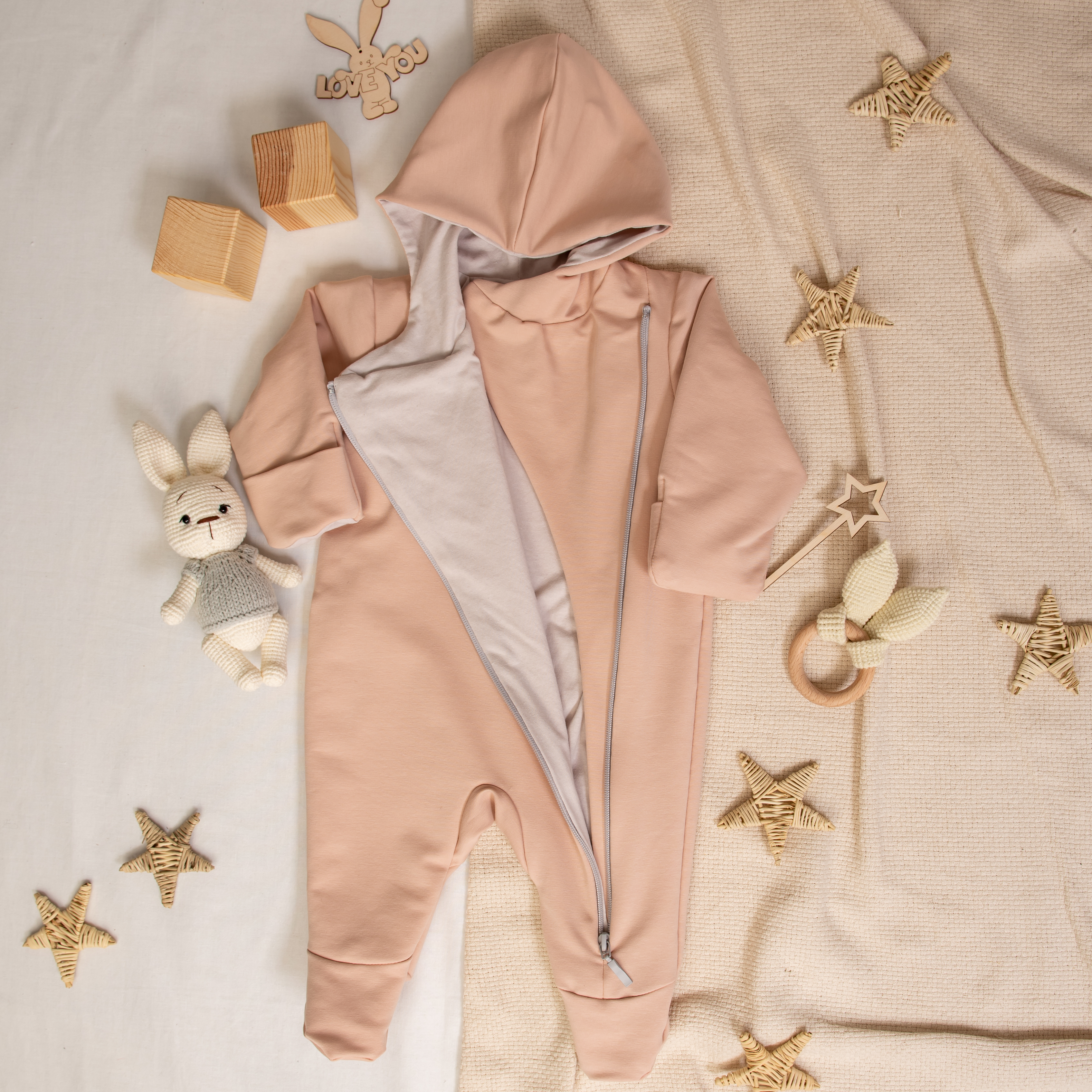 №М-495 Комбинезон на молнии с капюшоном, футер, бежевый