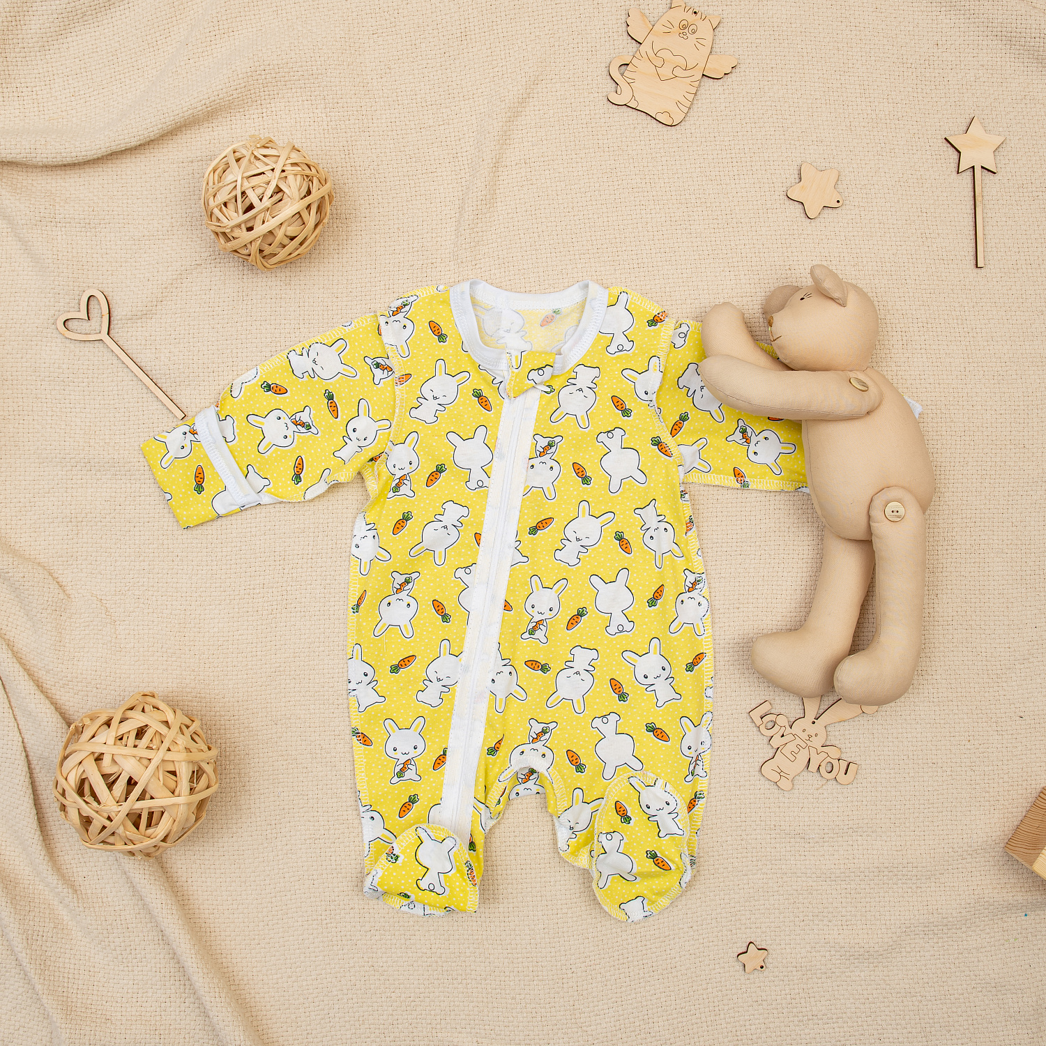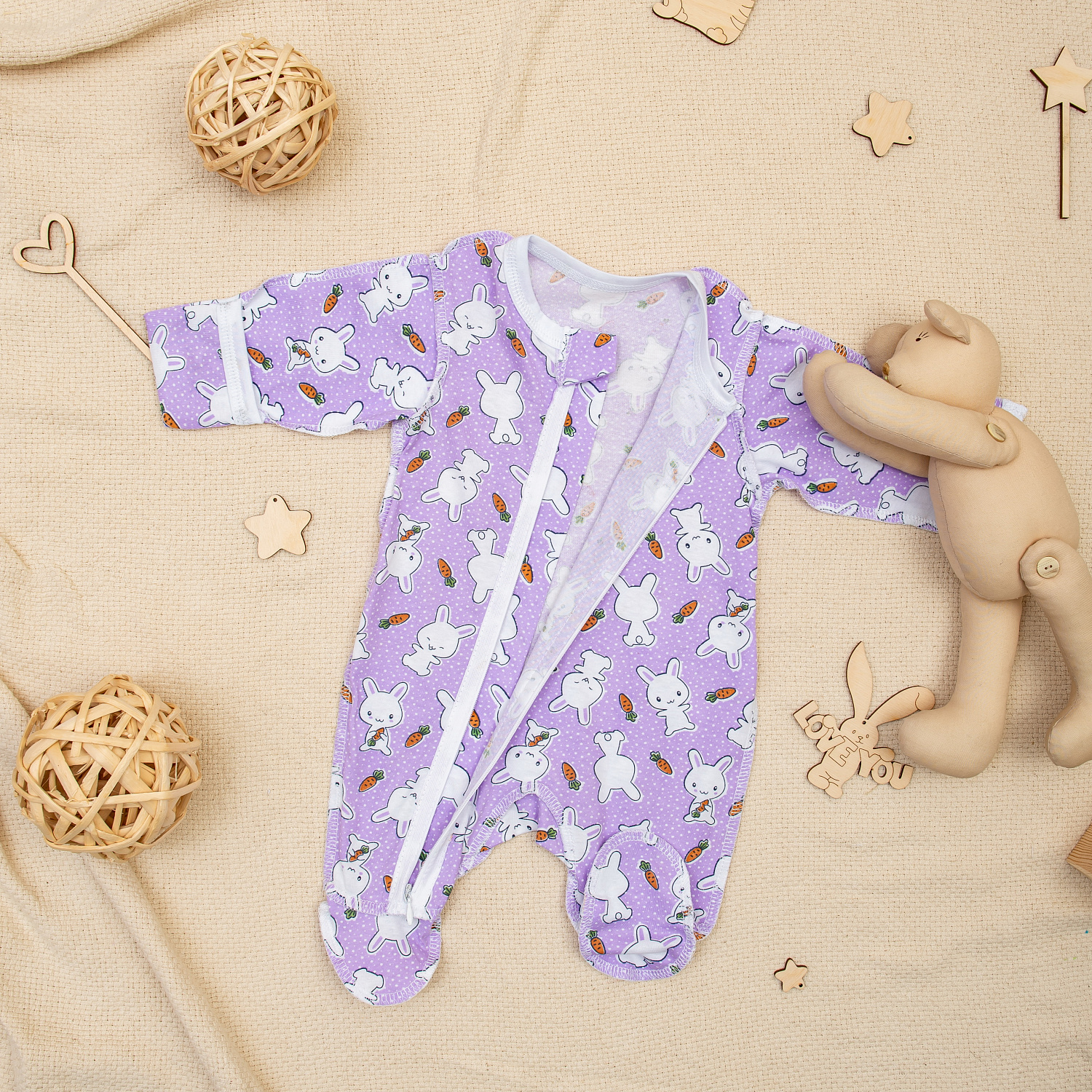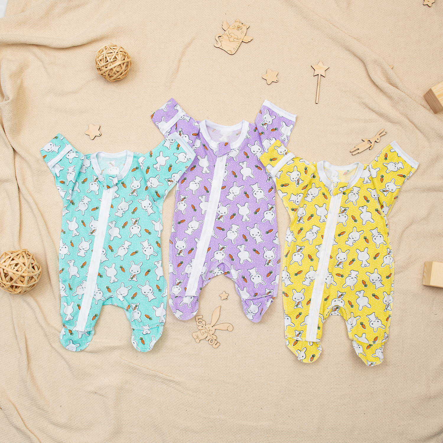 Милый домашний комбинезон-слип из хлопкового трикотажа с принтом "смешные зайки". Идеально подойдет в качестве подарка на первый месяц малыша!