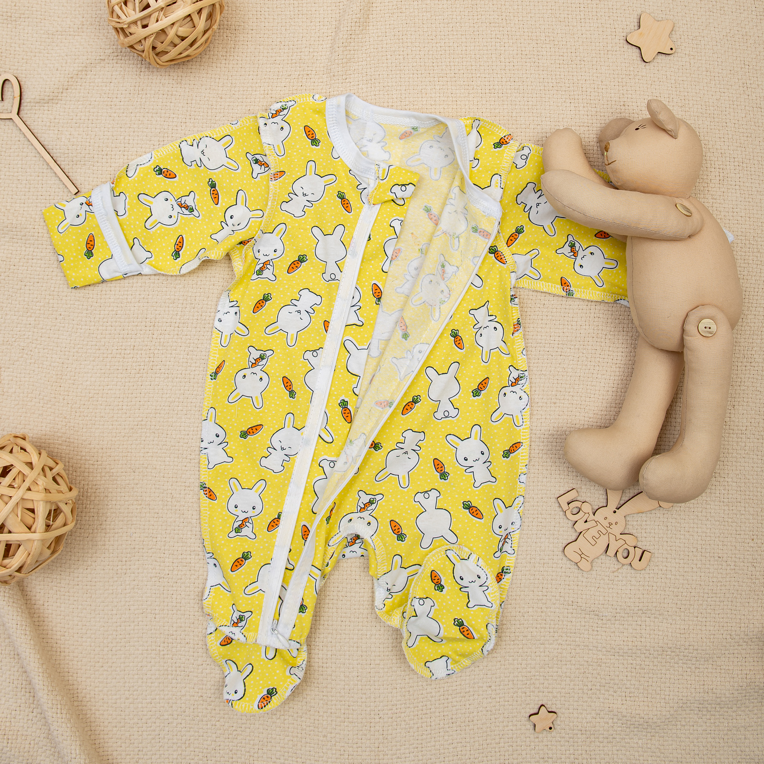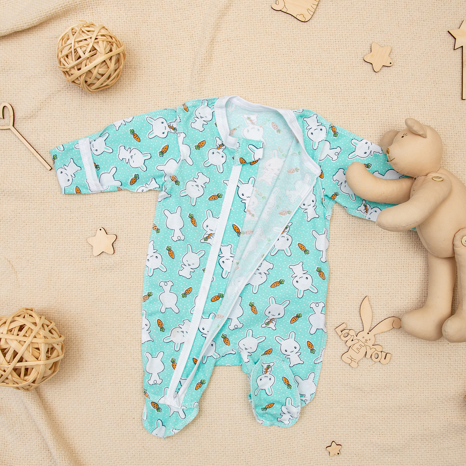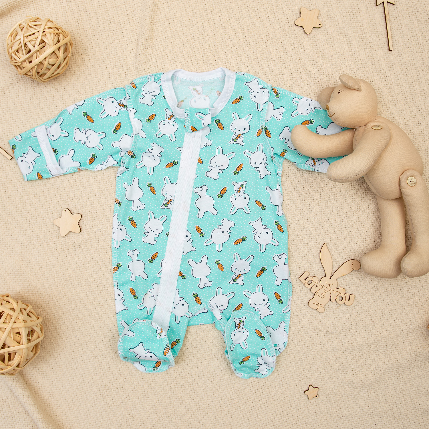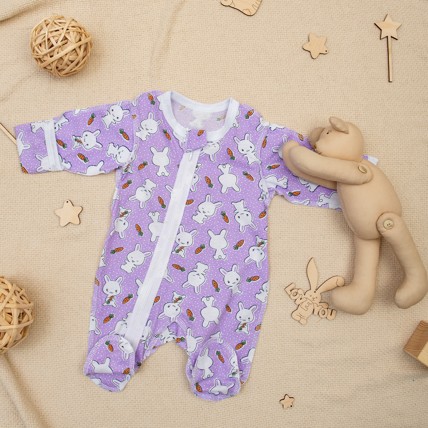 Милый домашний комбинезон-слип из хлопкового трикотажа с принтом "смешные зайки". Идеально подойдет в качестве подарка на первый месяц малыша!