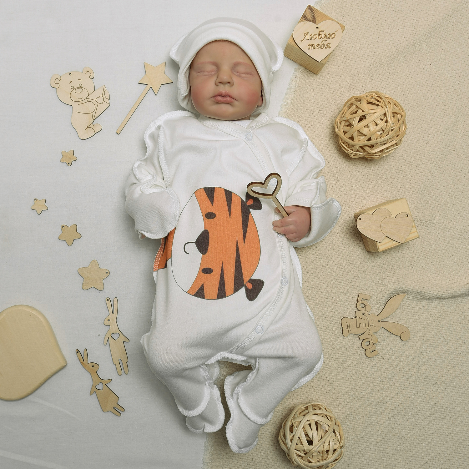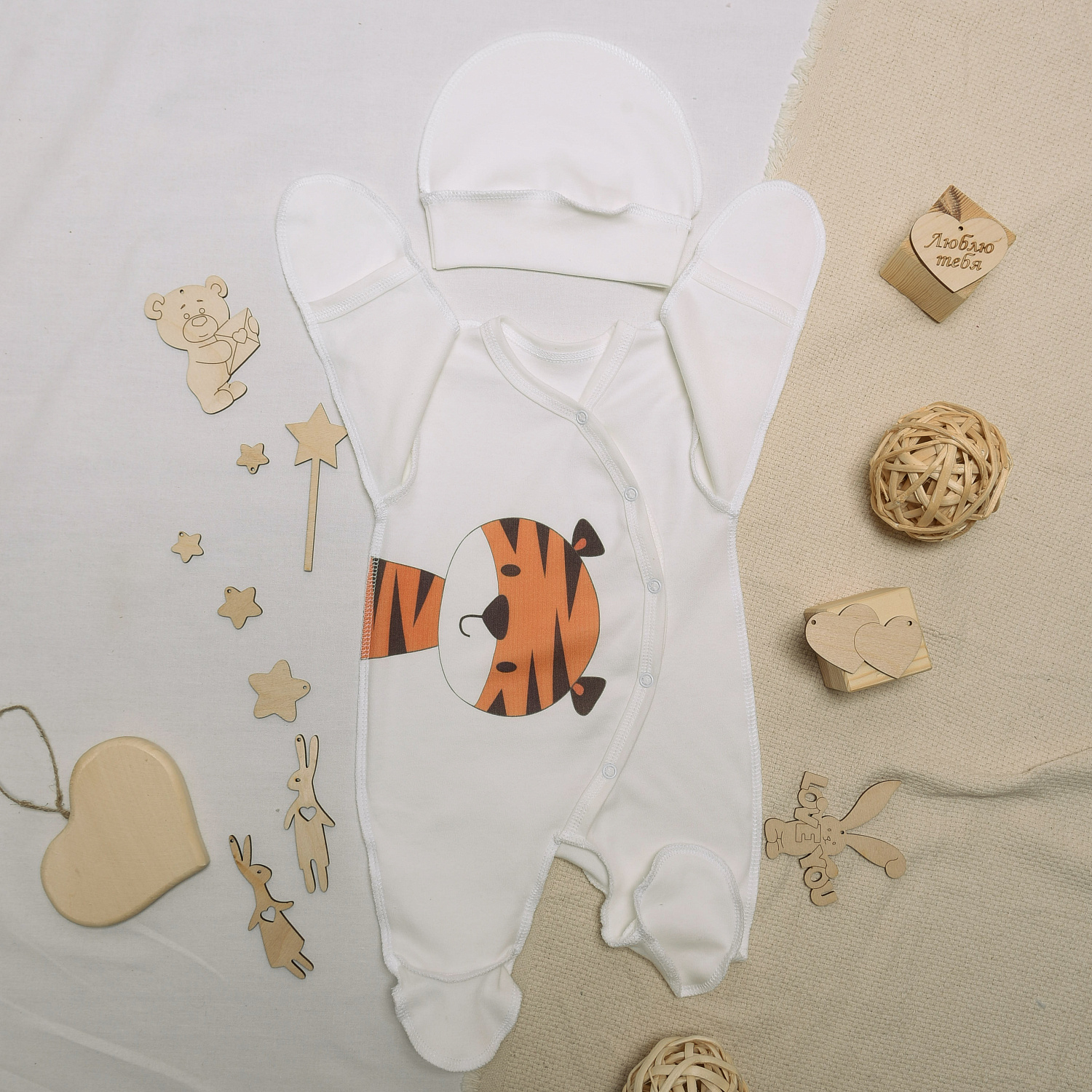 №М-497 Комбинезон с шапочкой на кнопках с принтом тигр