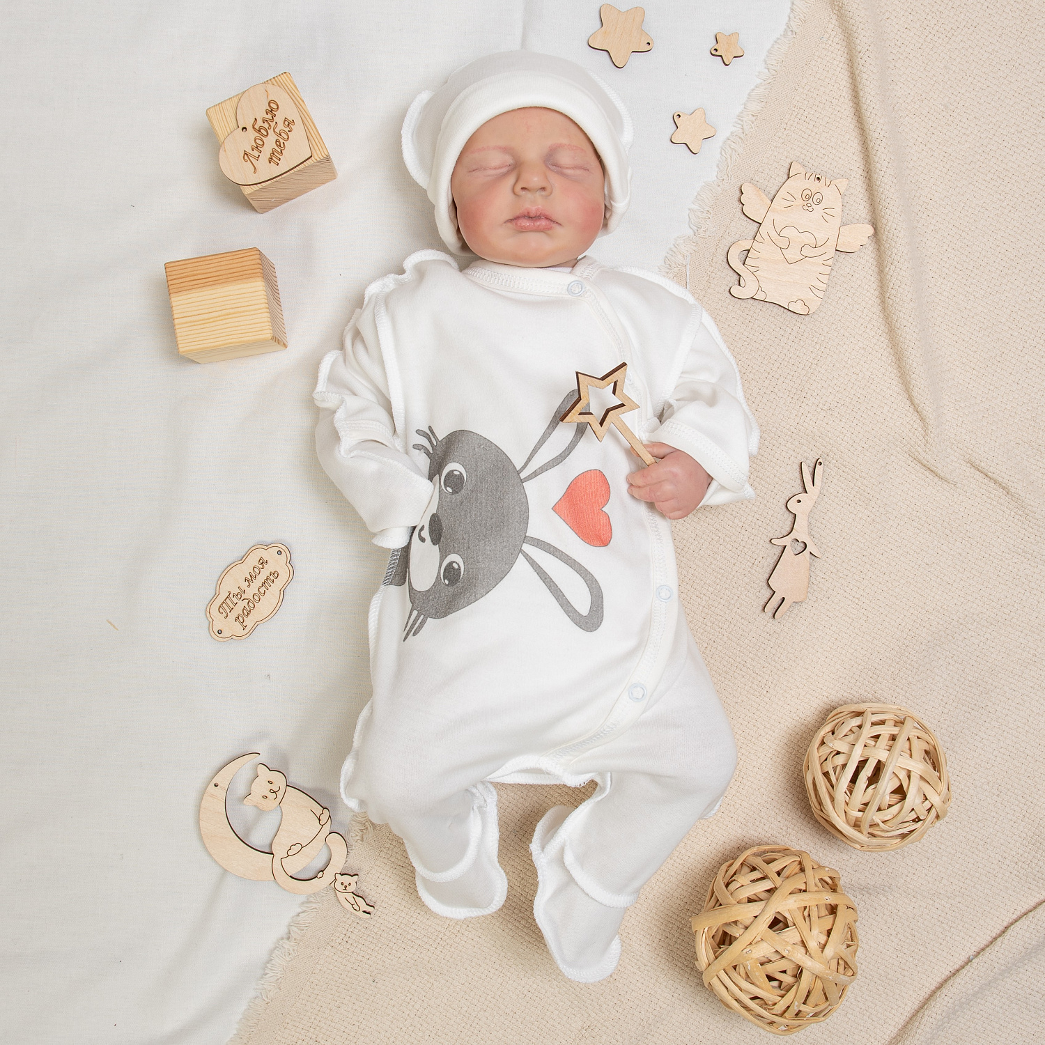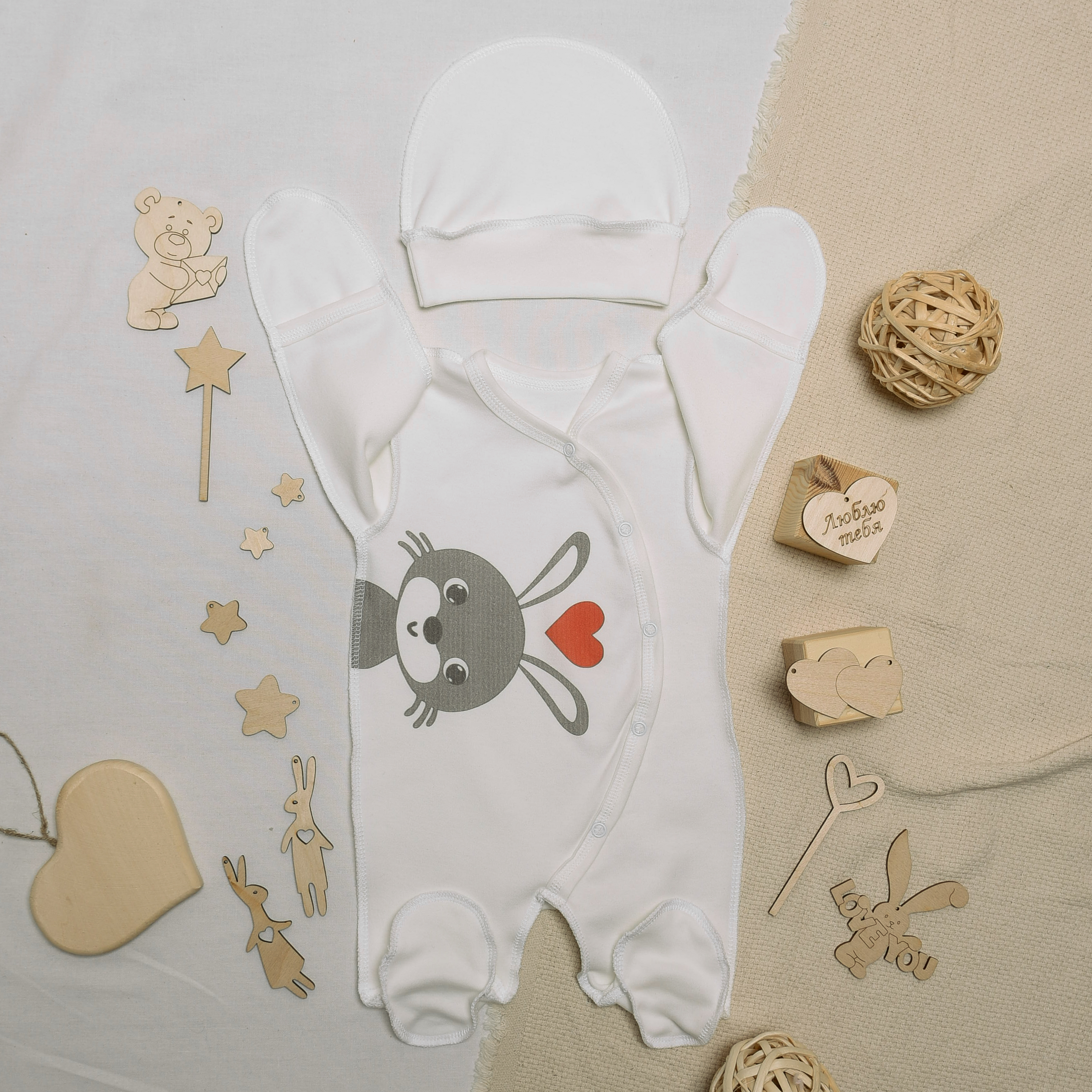 №М-497 Комбинезон с шапочкой на кнопках с принтом заяц
