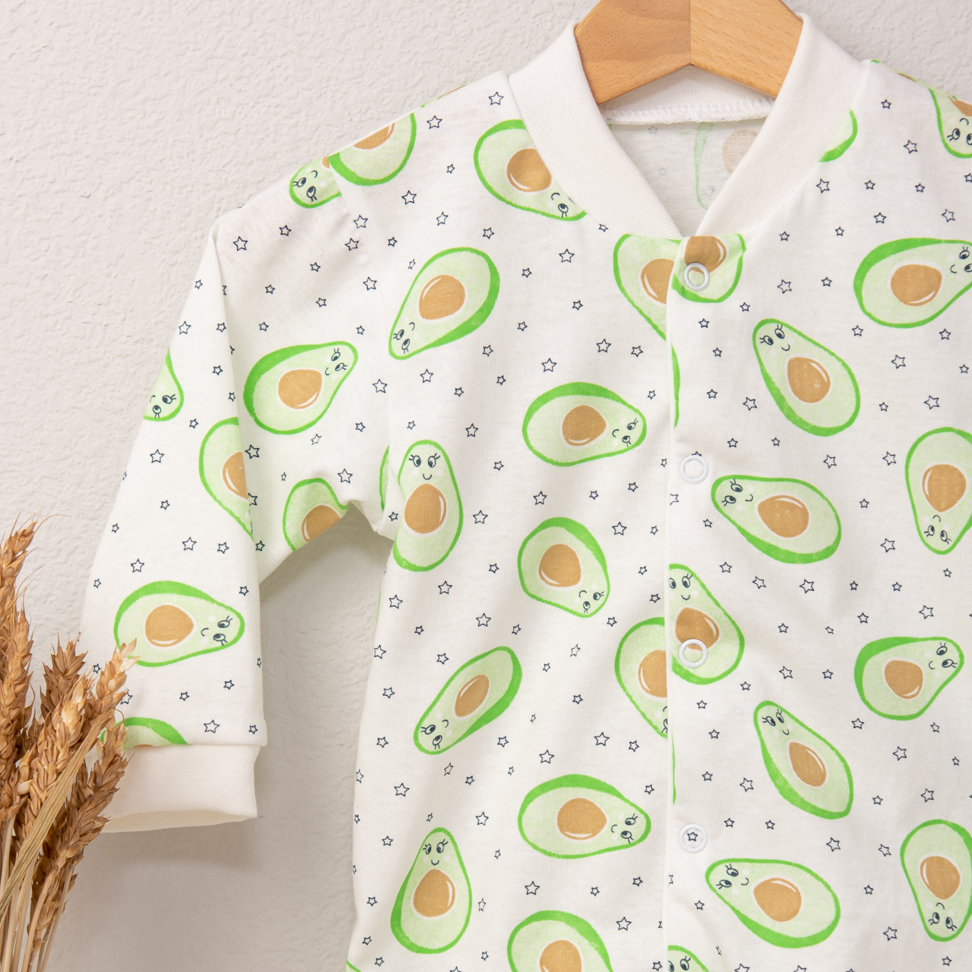 М-518 Комбинезон детский "Авокадо", модель на кнопках, рукава на манжетах, ножки закрыты.