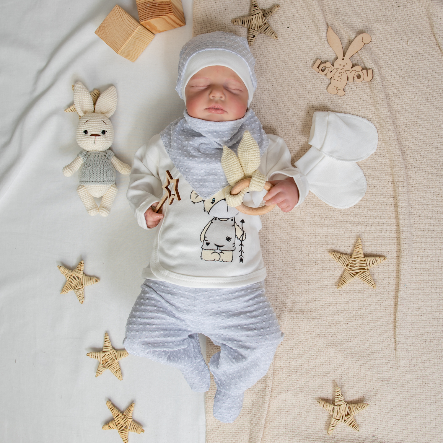 Стильный и модный комплект из четырех предметов для вашего крохи, 100% хлопок.