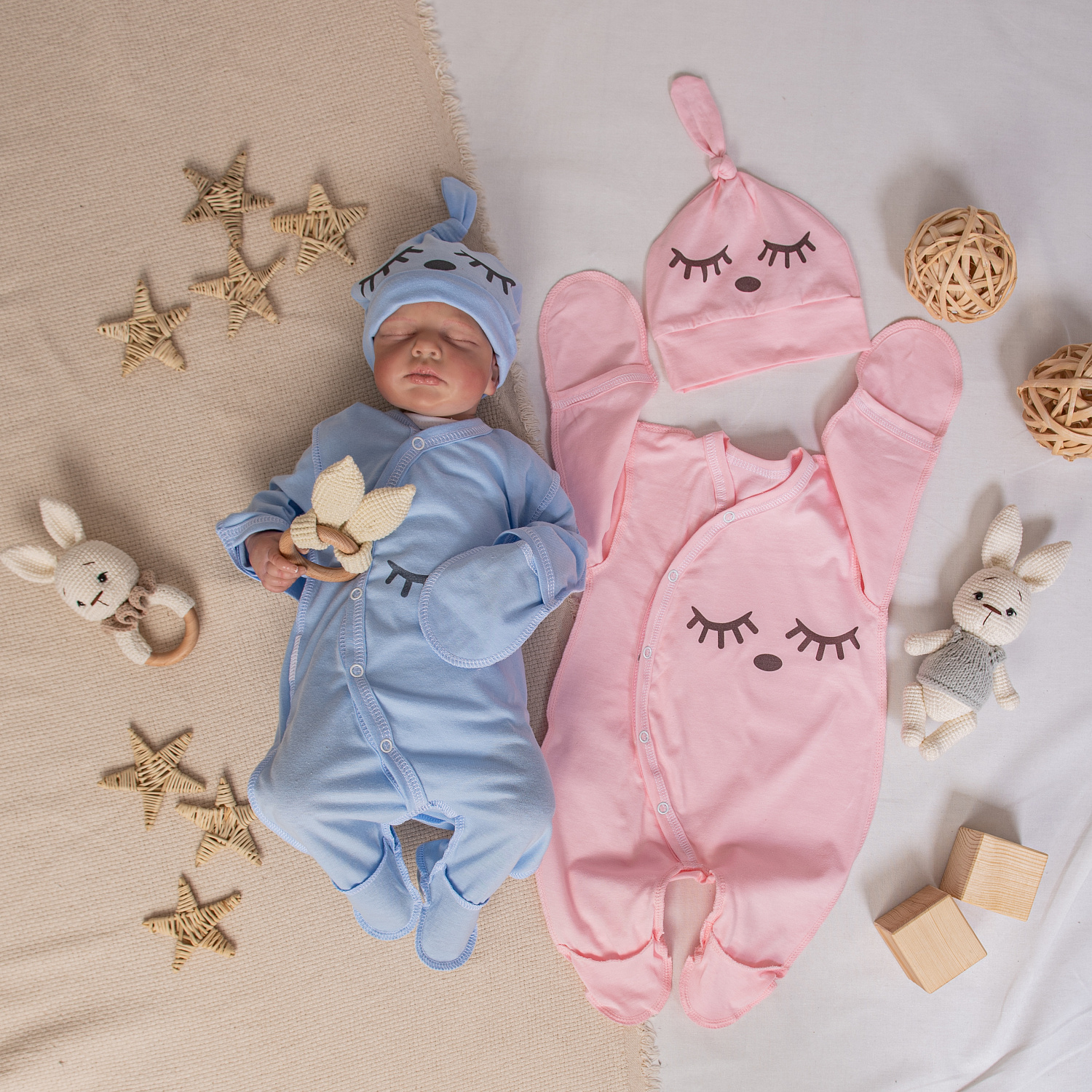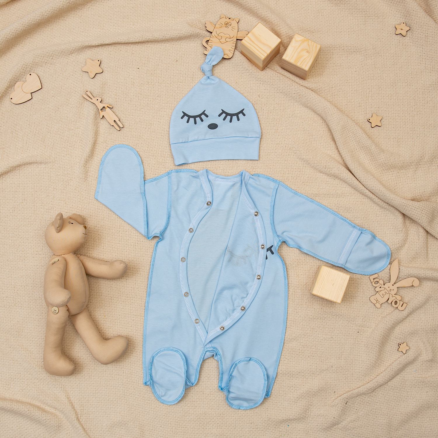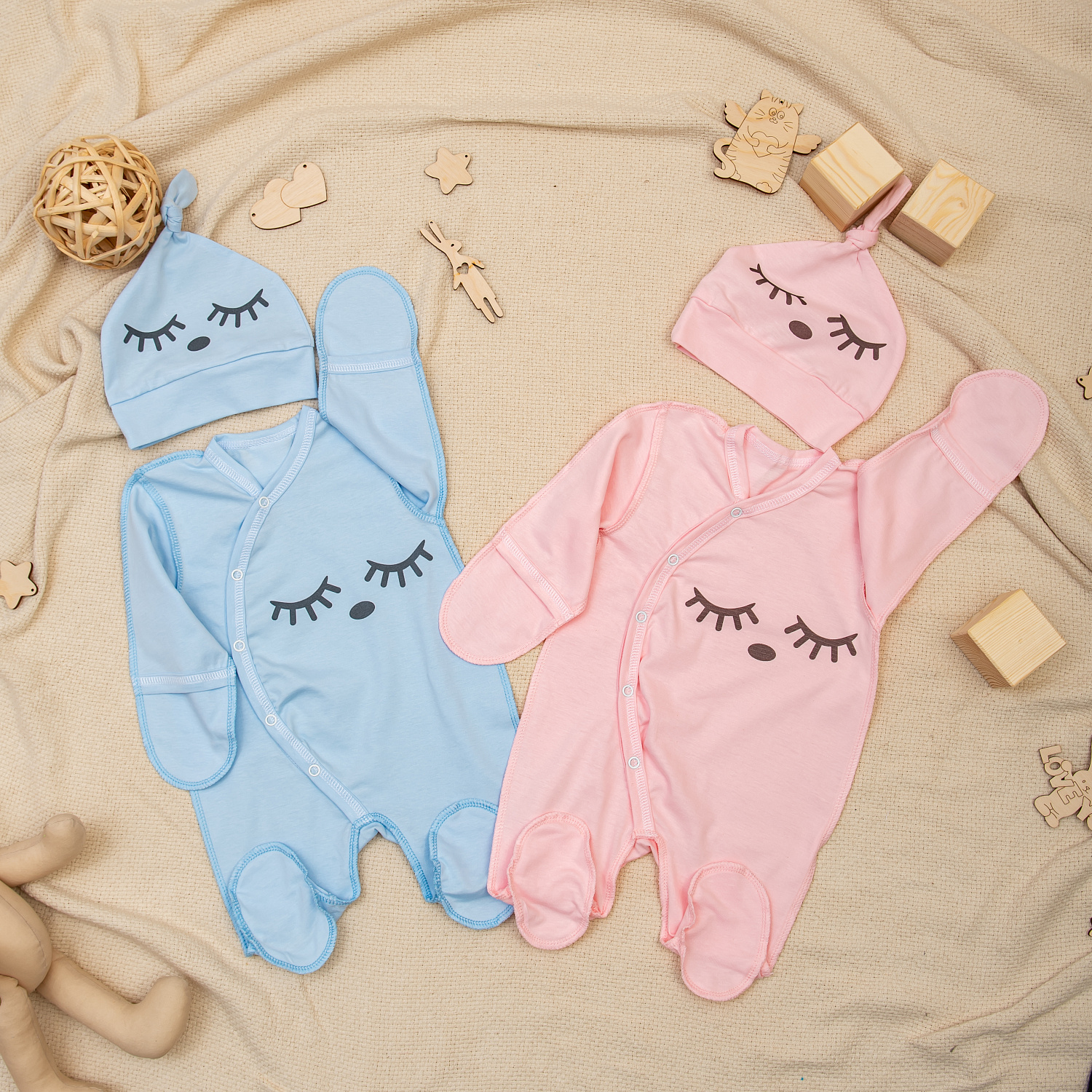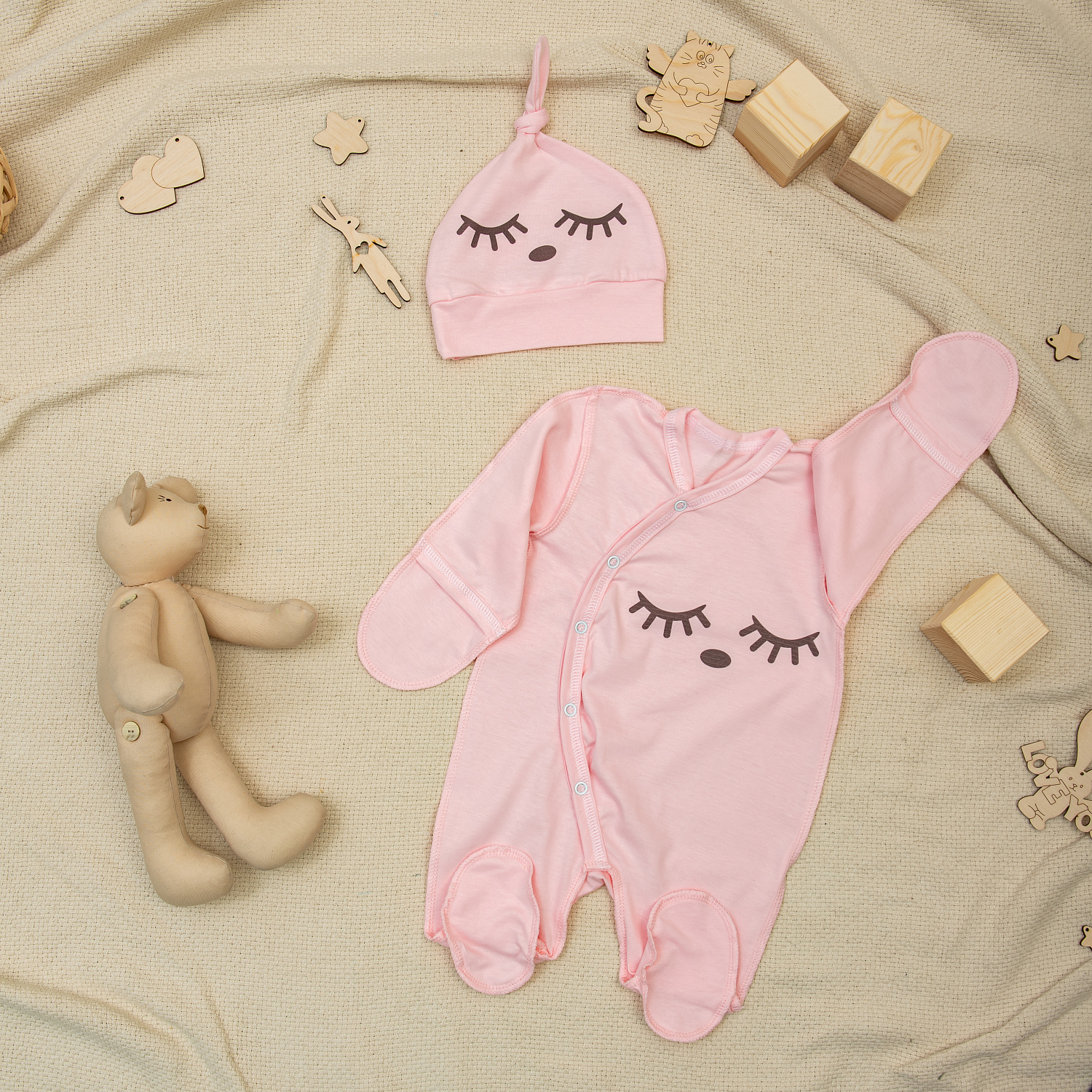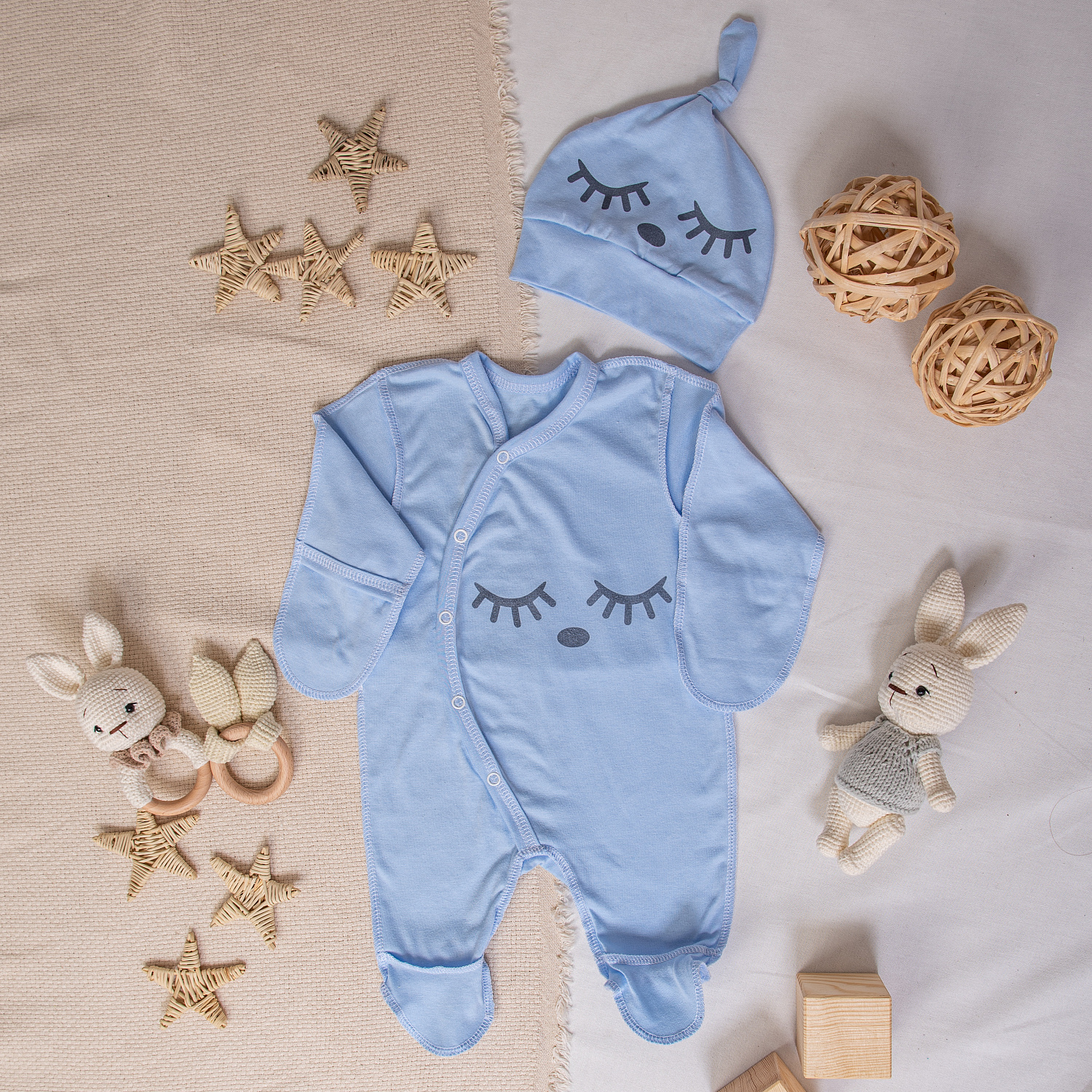 Комплект из комбинезона с принтом на кнопках с чепчиком №М-471