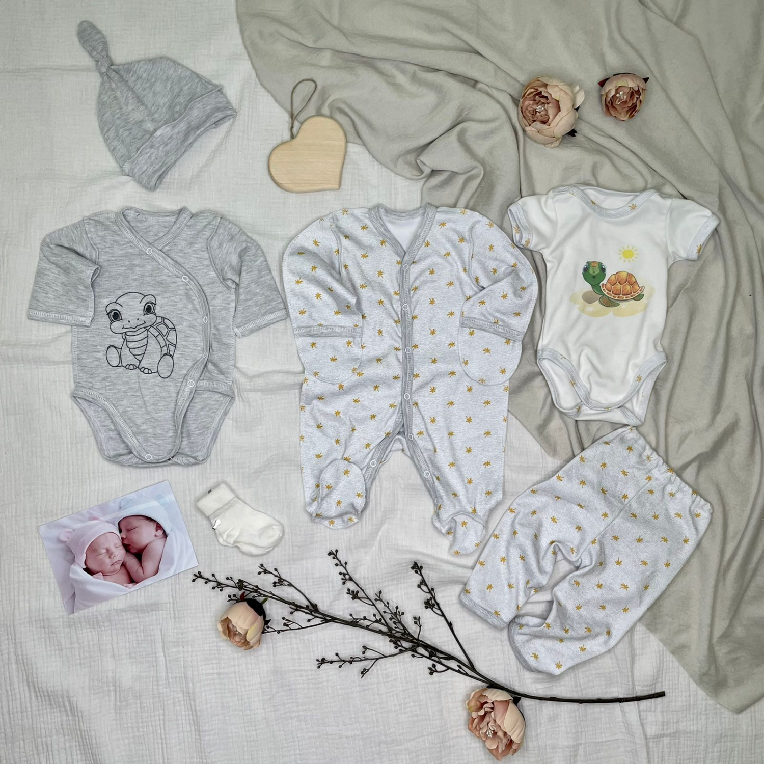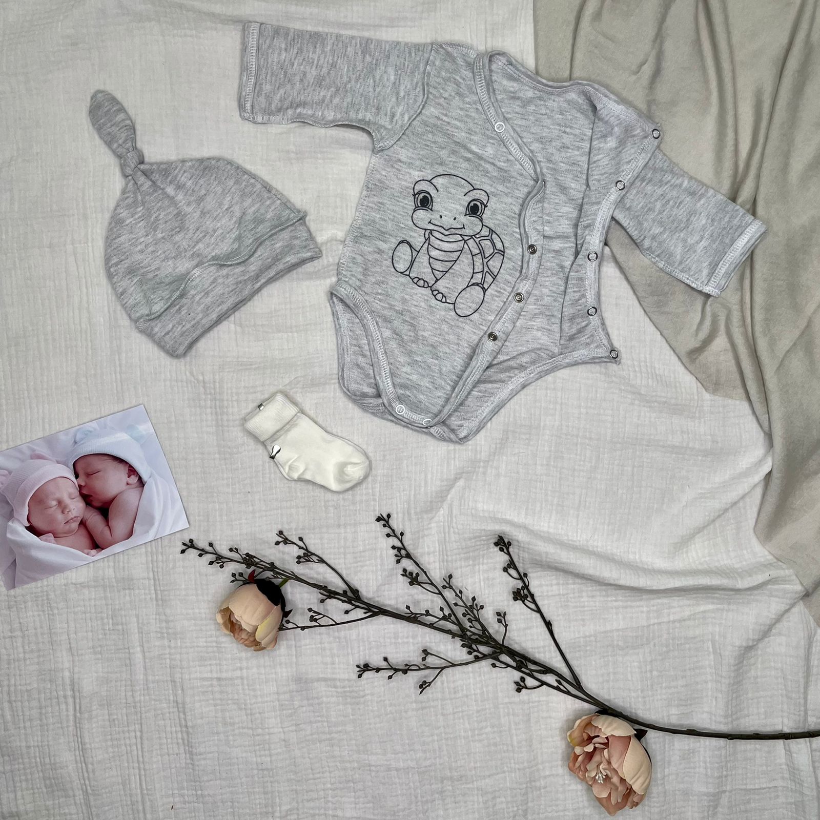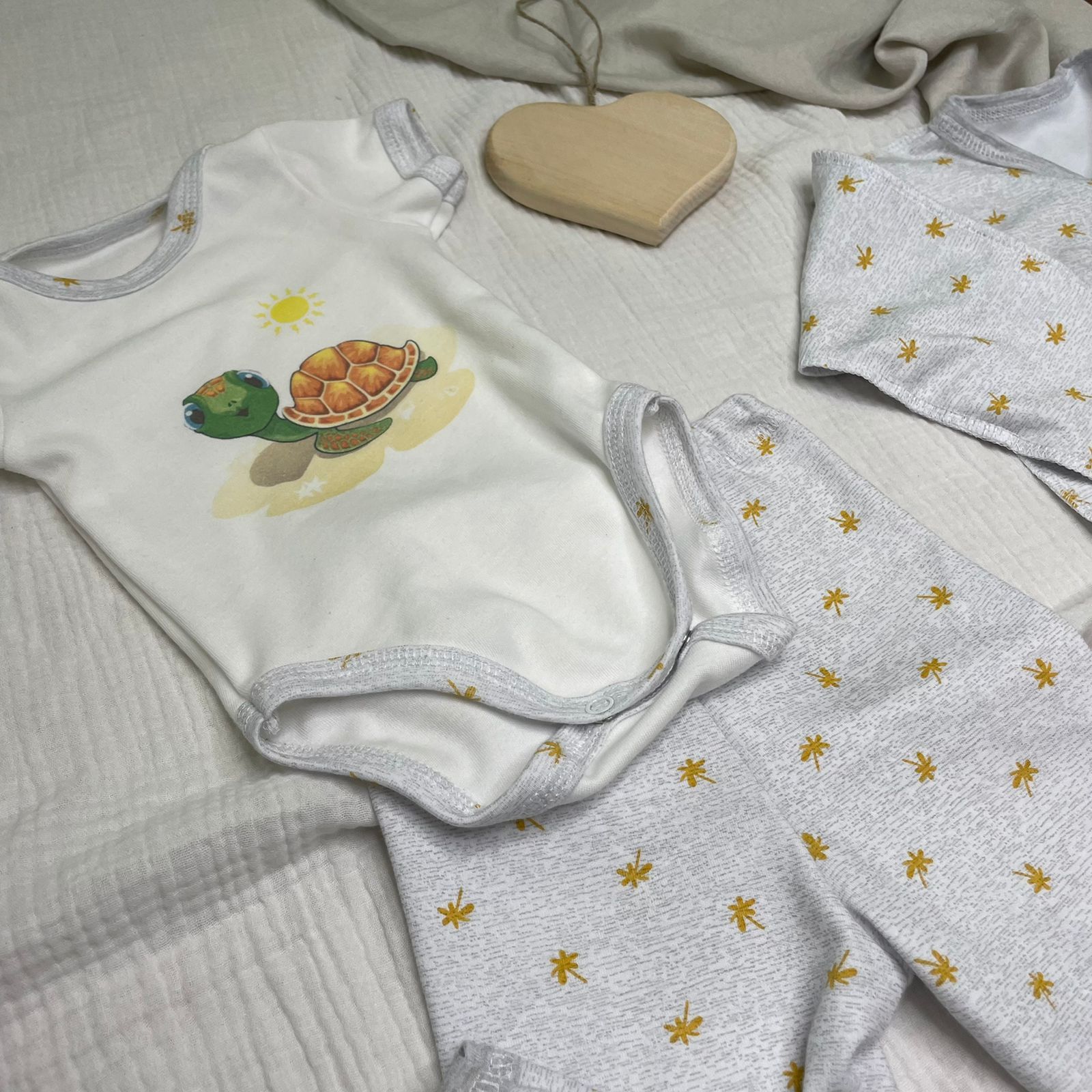 Набор разработан для 62 роста, что соответствует 0-3 мес.