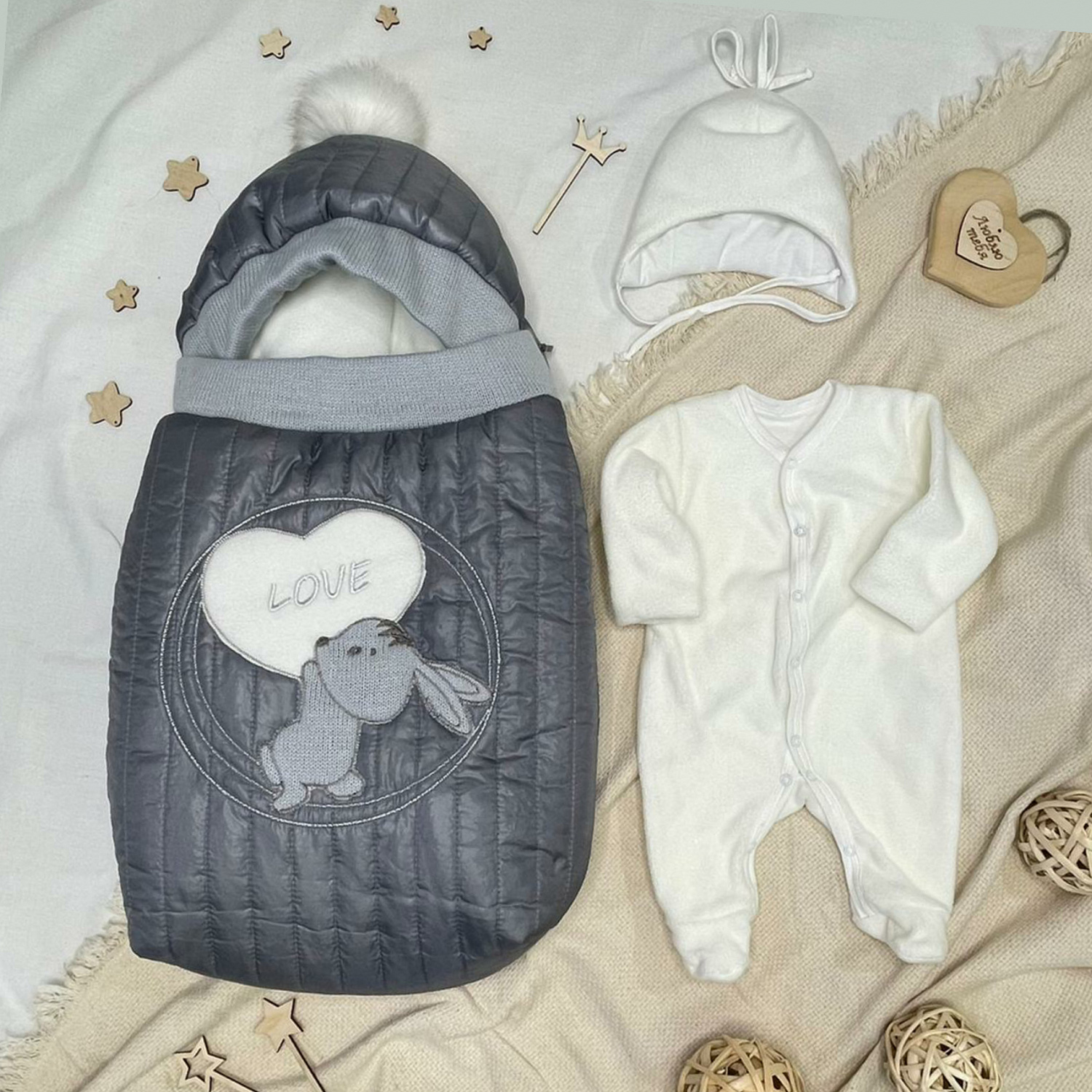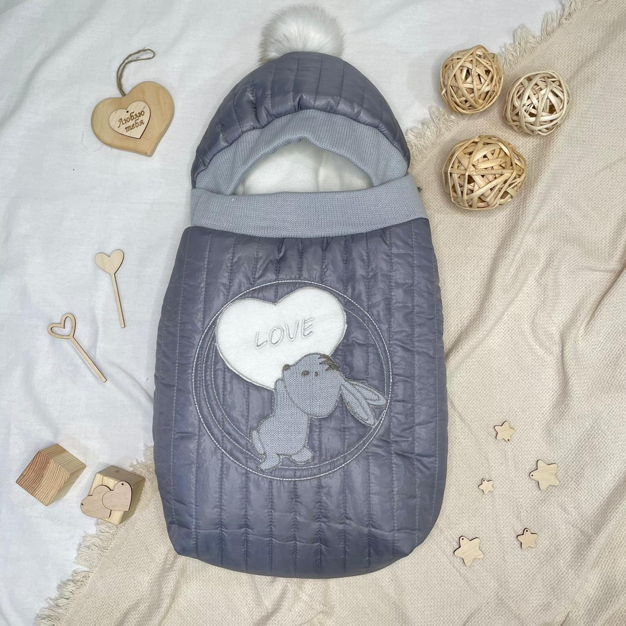 Арт. 11-406 Конверт прогулочный Зайка «Love» серый