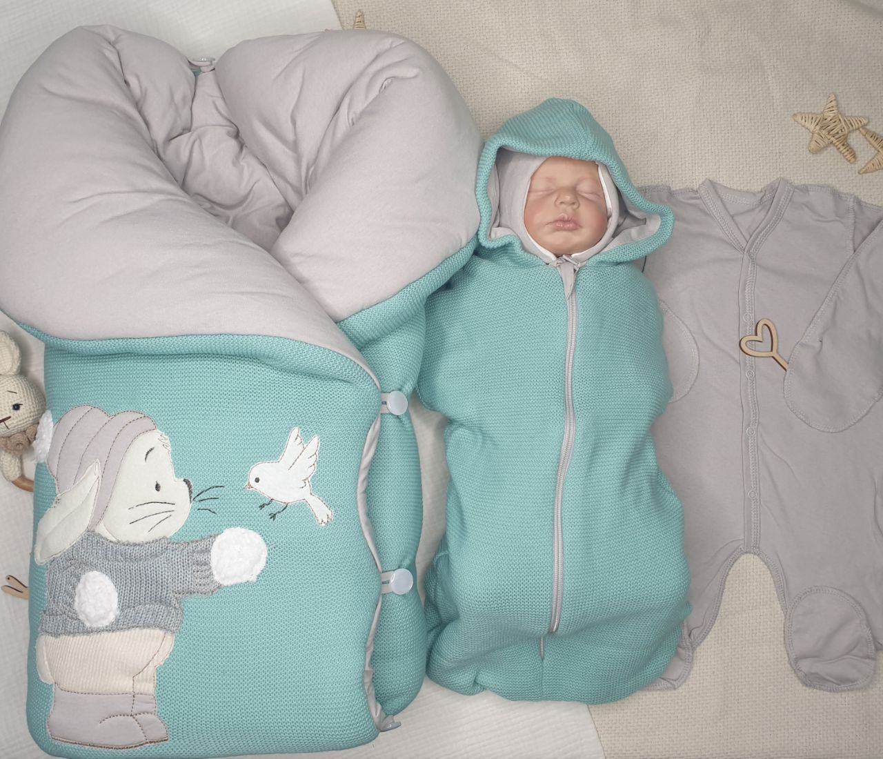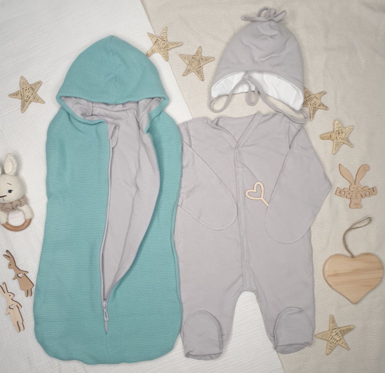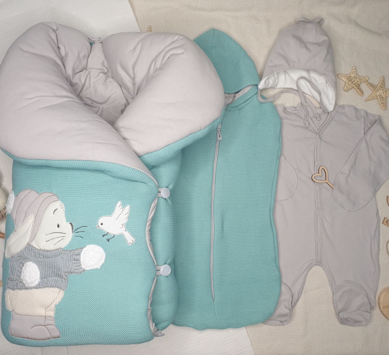 Комплект на выписку из вязанного полотна, внутри трикотажный хлопок,