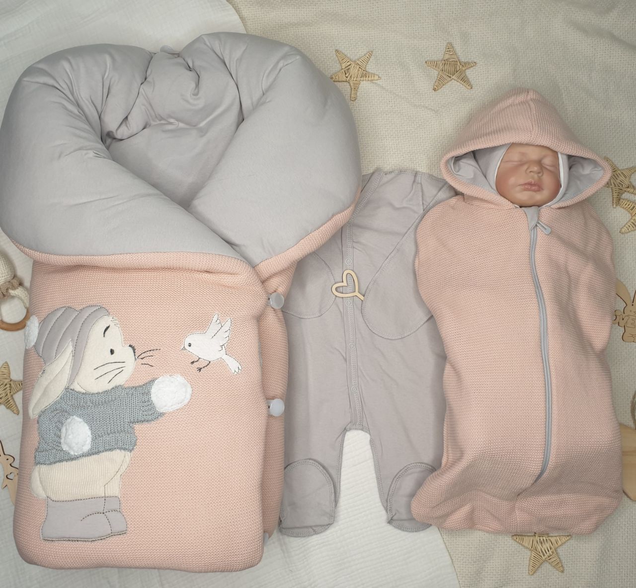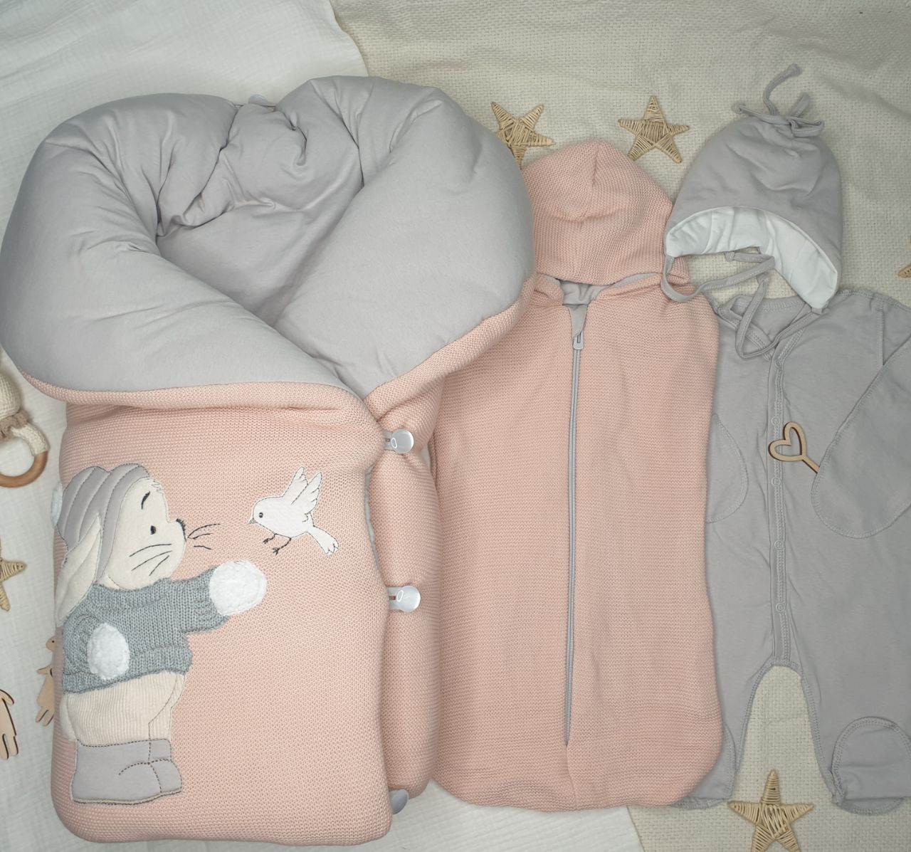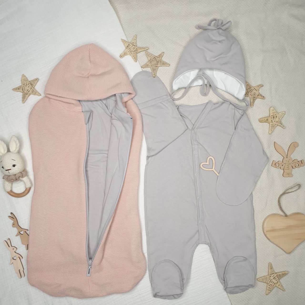 Комплект на выписку из вязанного полотна, внутри трикотажный хлопок,