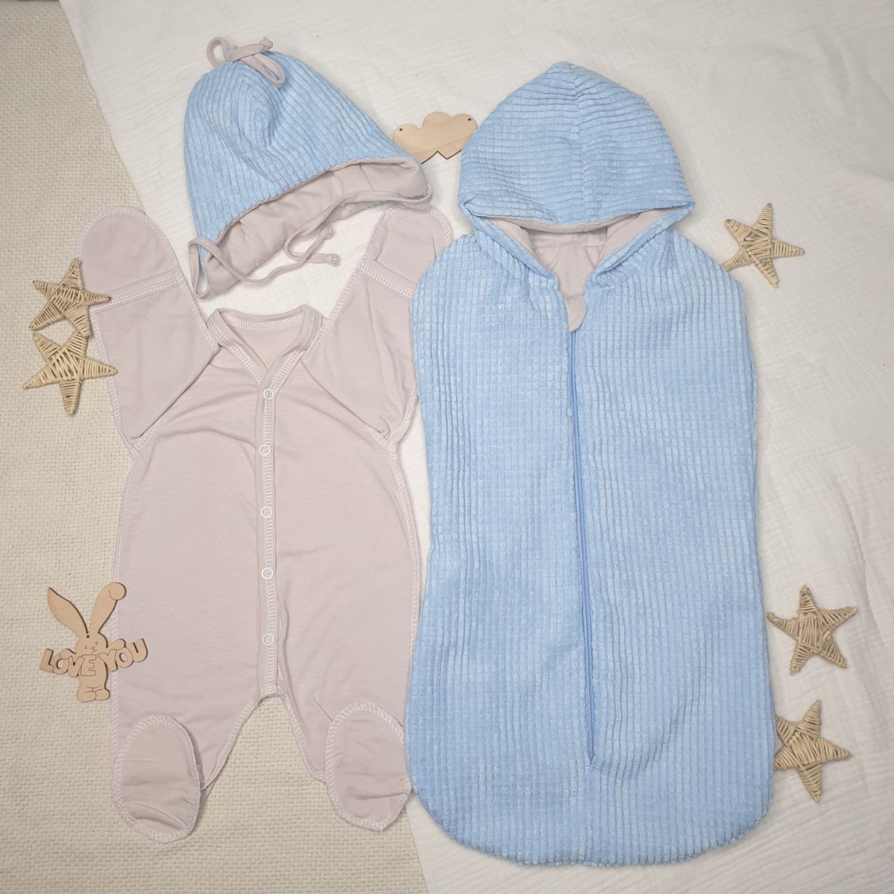 4.Кокон на молнии с капюшоном р-р 0-3 мес(вельвет, кулирка)