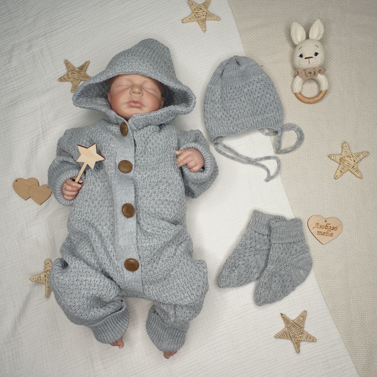 2.Комбинезон вязанный с капюшоном . р-р 56/62