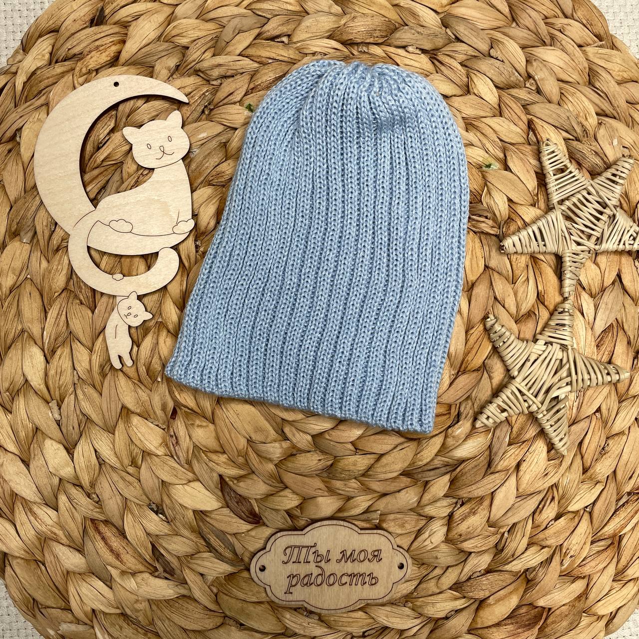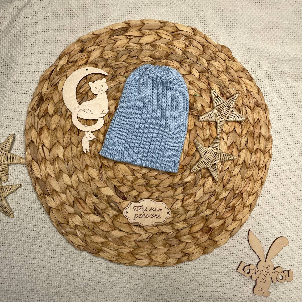 Б-295 Шапочка детская в стиле "Бини". вязаная. р.0-3 мес, голубой