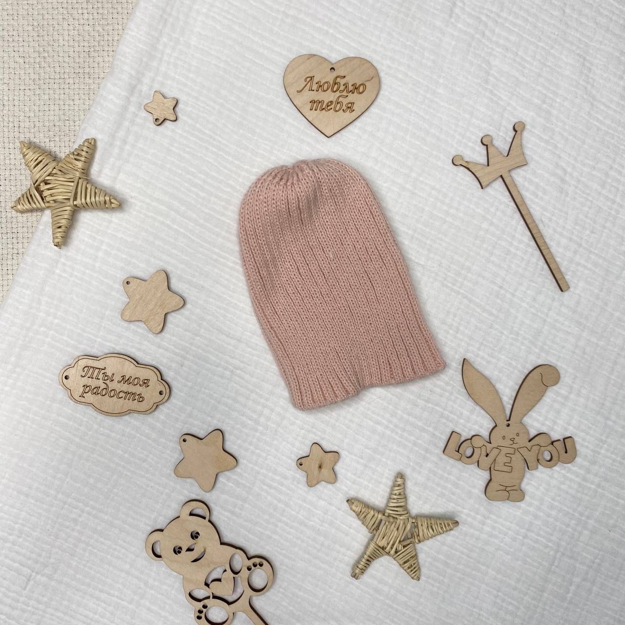 Б-296 Шапочка детская в стиле "Бини". полушерсть, пудра