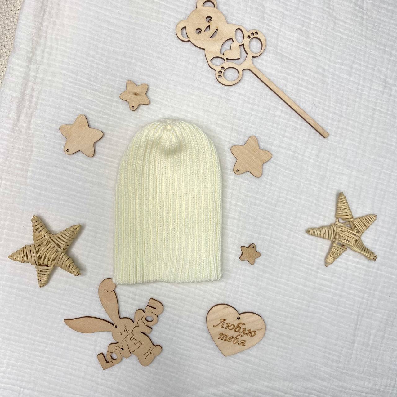 Б-296 Шапочка детская в стиле "Бини". вязаная. полушерсть, молочный