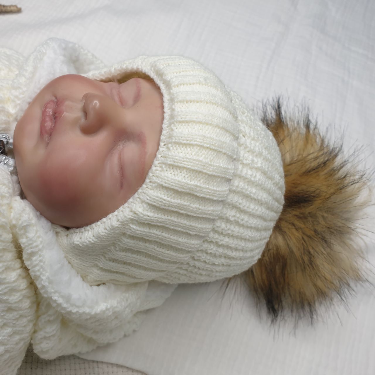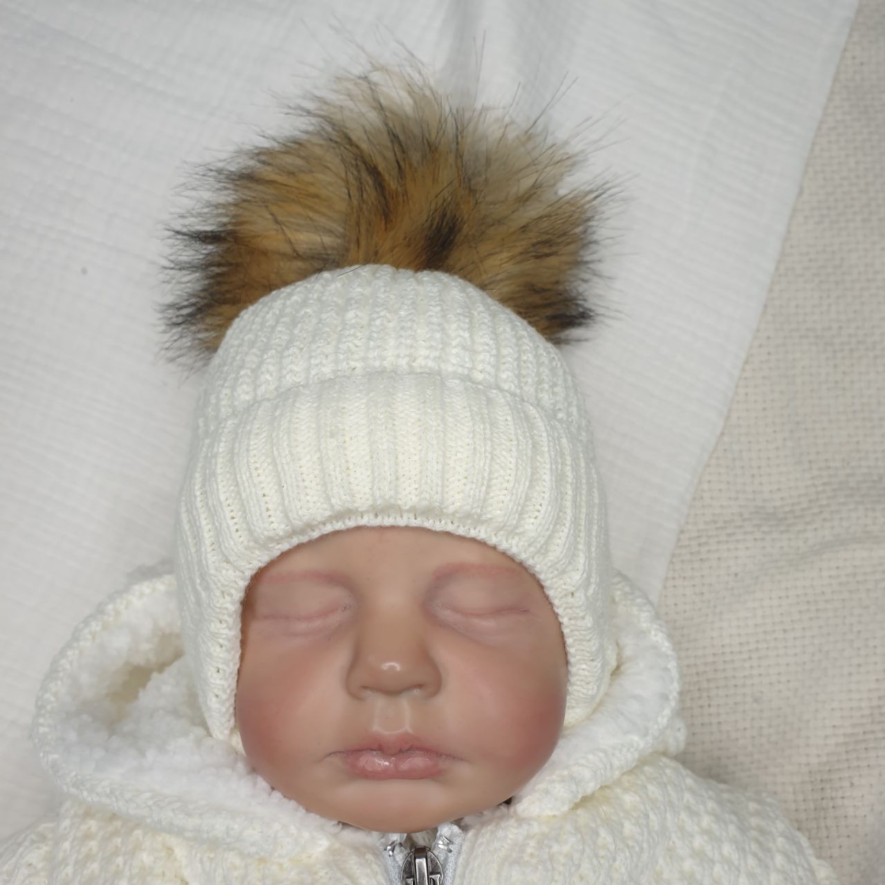 Б-298 Шапочка вязаная с понпоном молочный