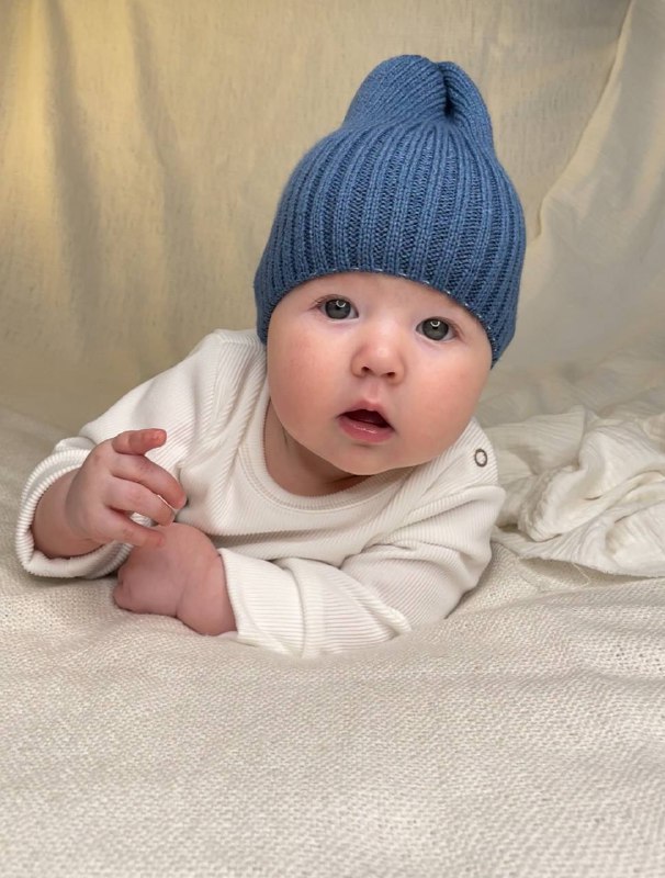 Теплая шапочка с полушерстяной нити. Удобно облегает голову малыша, модель создана в стиле "Бини".