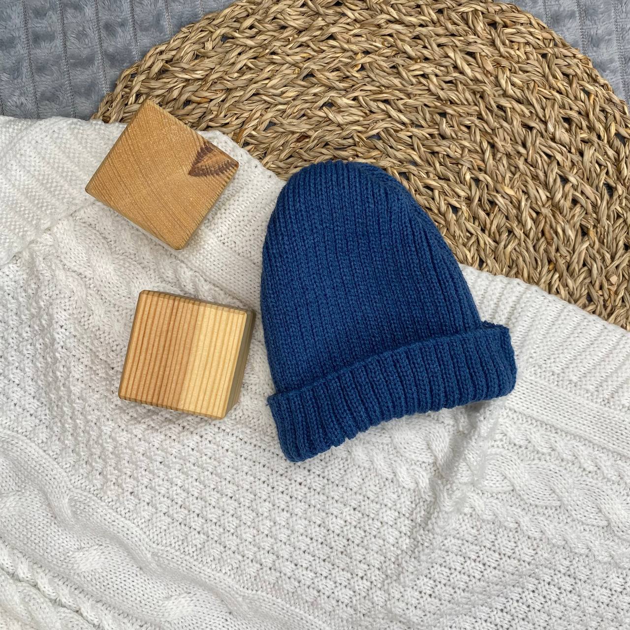 Б-299 Шапочка детская в стиле "Бини". вязаная. полушерсть, джинс