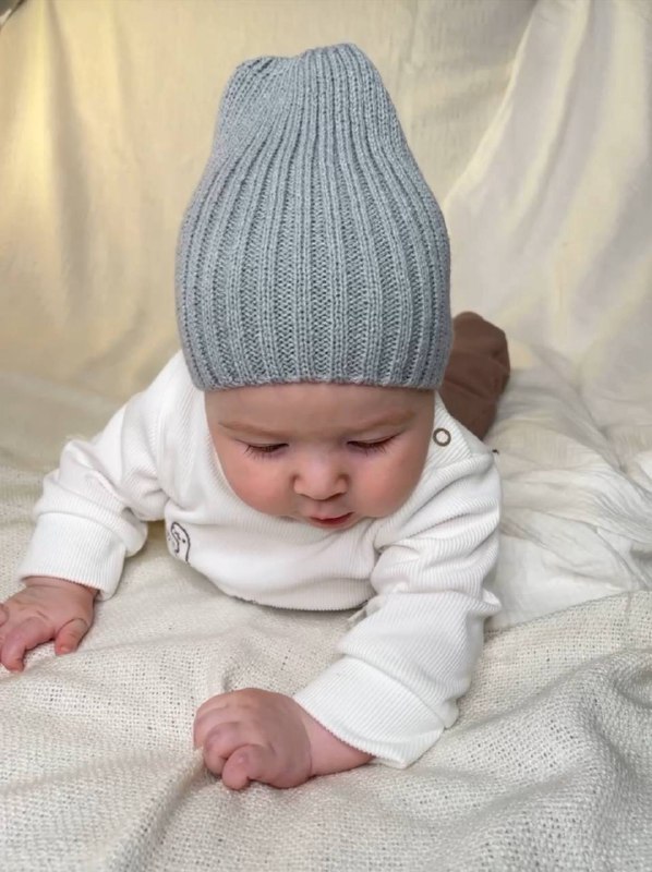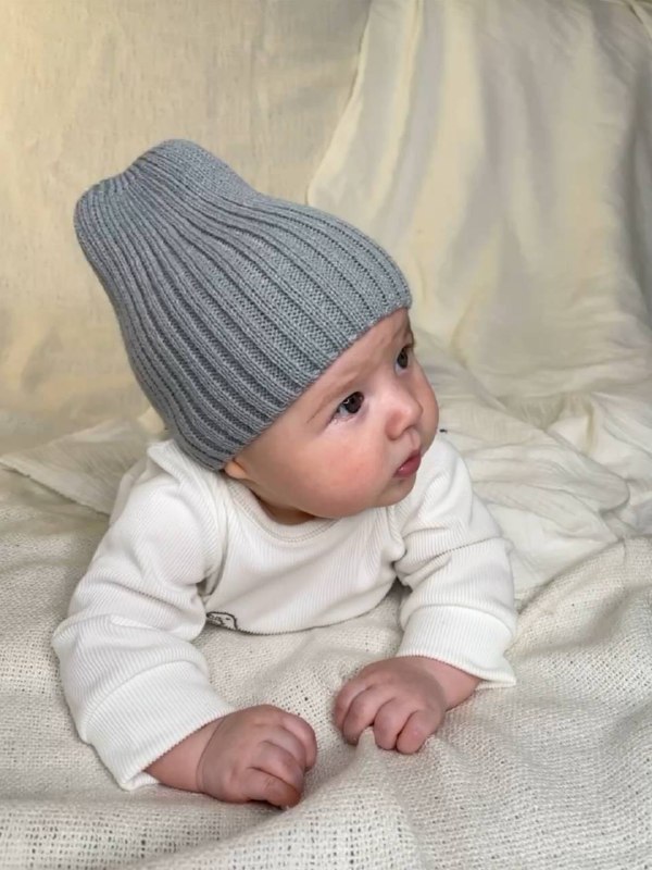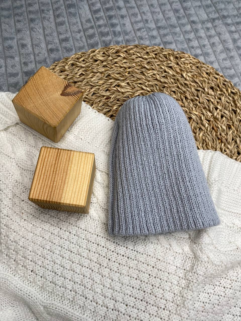 Б-299 Шапочка детская в стиле "Бини". вязаная. полушерсть, серая