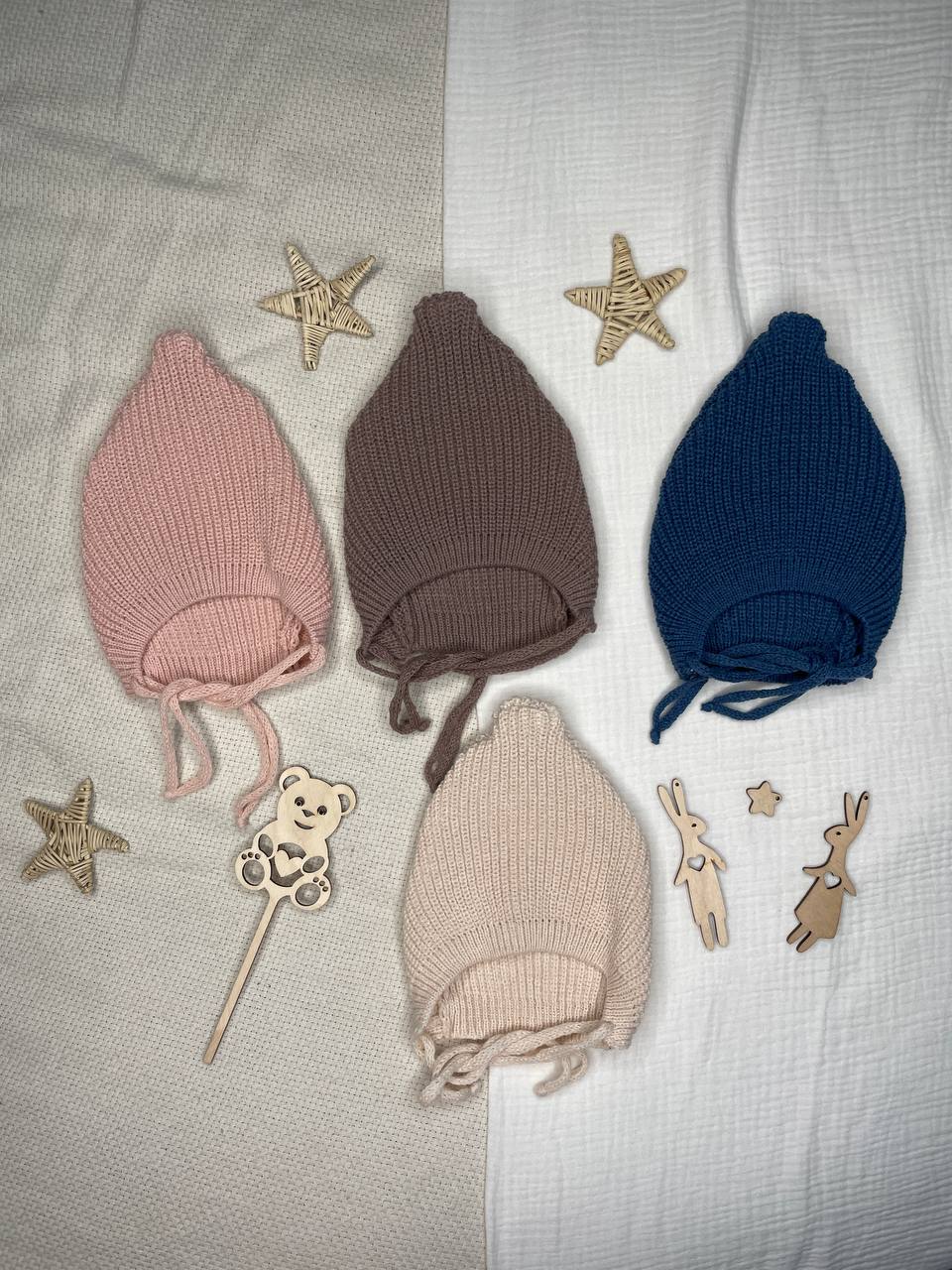 Б-301 Вязаная шапочка на завязках.