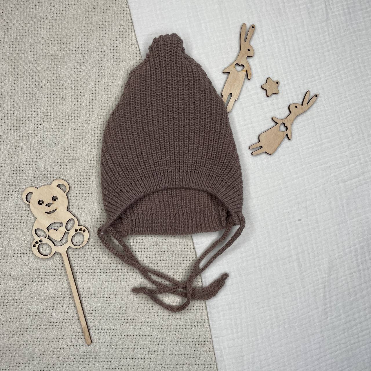 Б-301 Вязаная шапочка на завязках. Шоколад