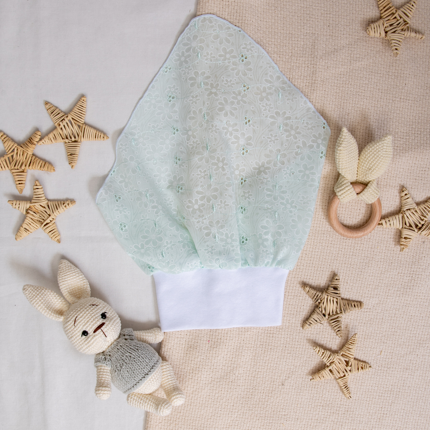 Косынки сшиты из кружевного шитья на эластичной рибане. Хлопок 100%.