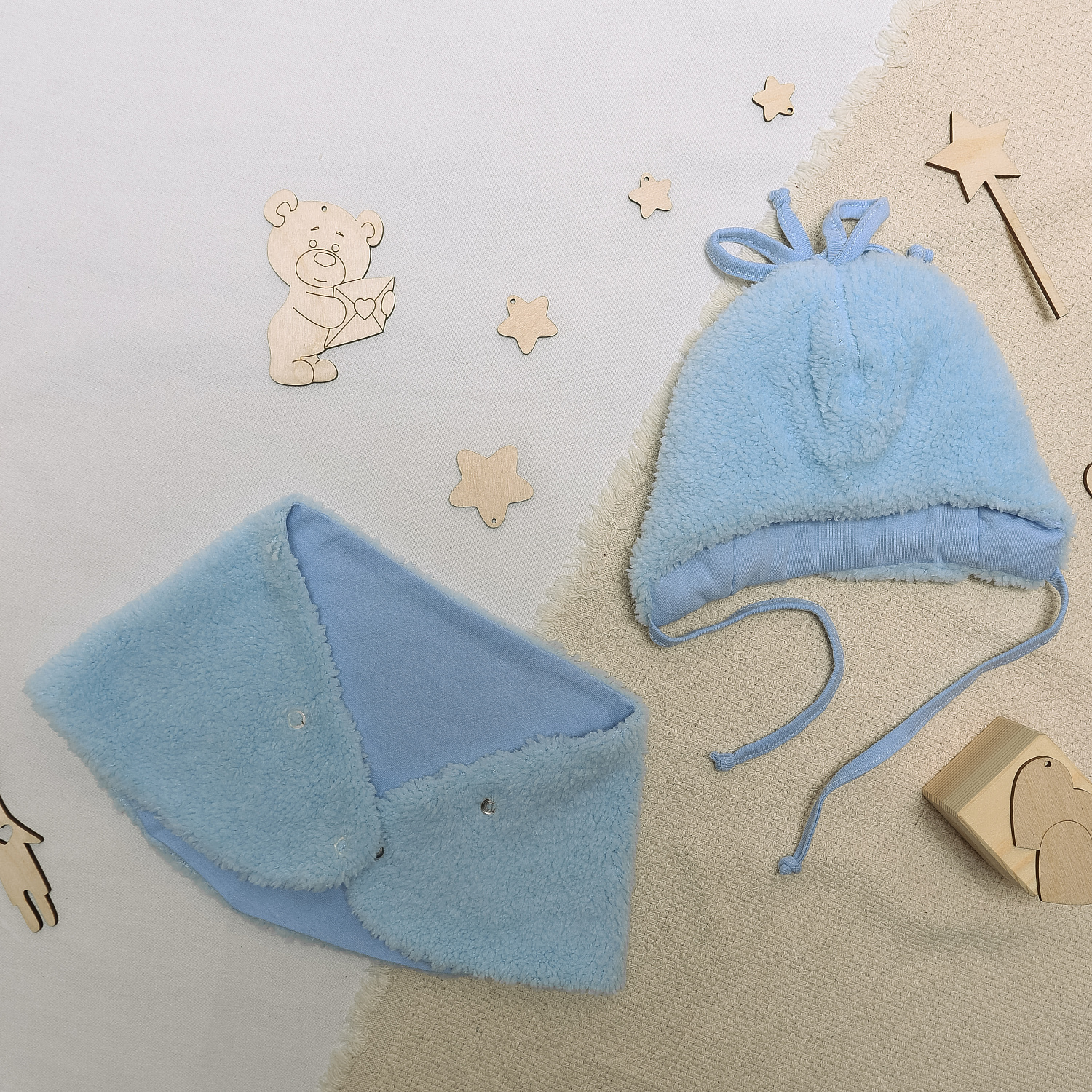 Шапочка плотно облегает голову ребенка. Снуд регулируется 2-мя кнопками, защищая от холодного ветра малыша.