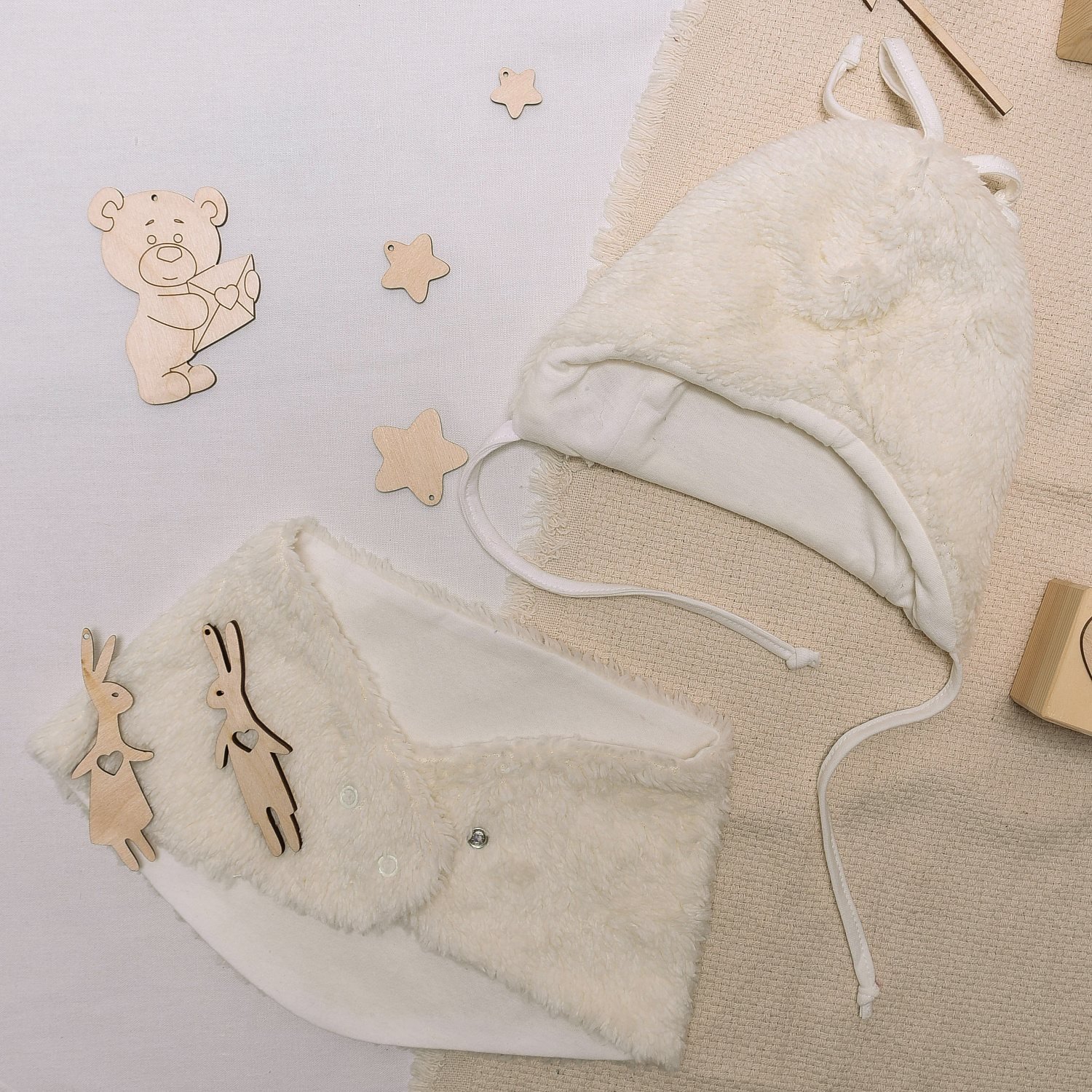 Комплект из снудика и шапочки на холодное время года. Выполнены из мерлушки снаружи и хлопка на внутренней стороне.