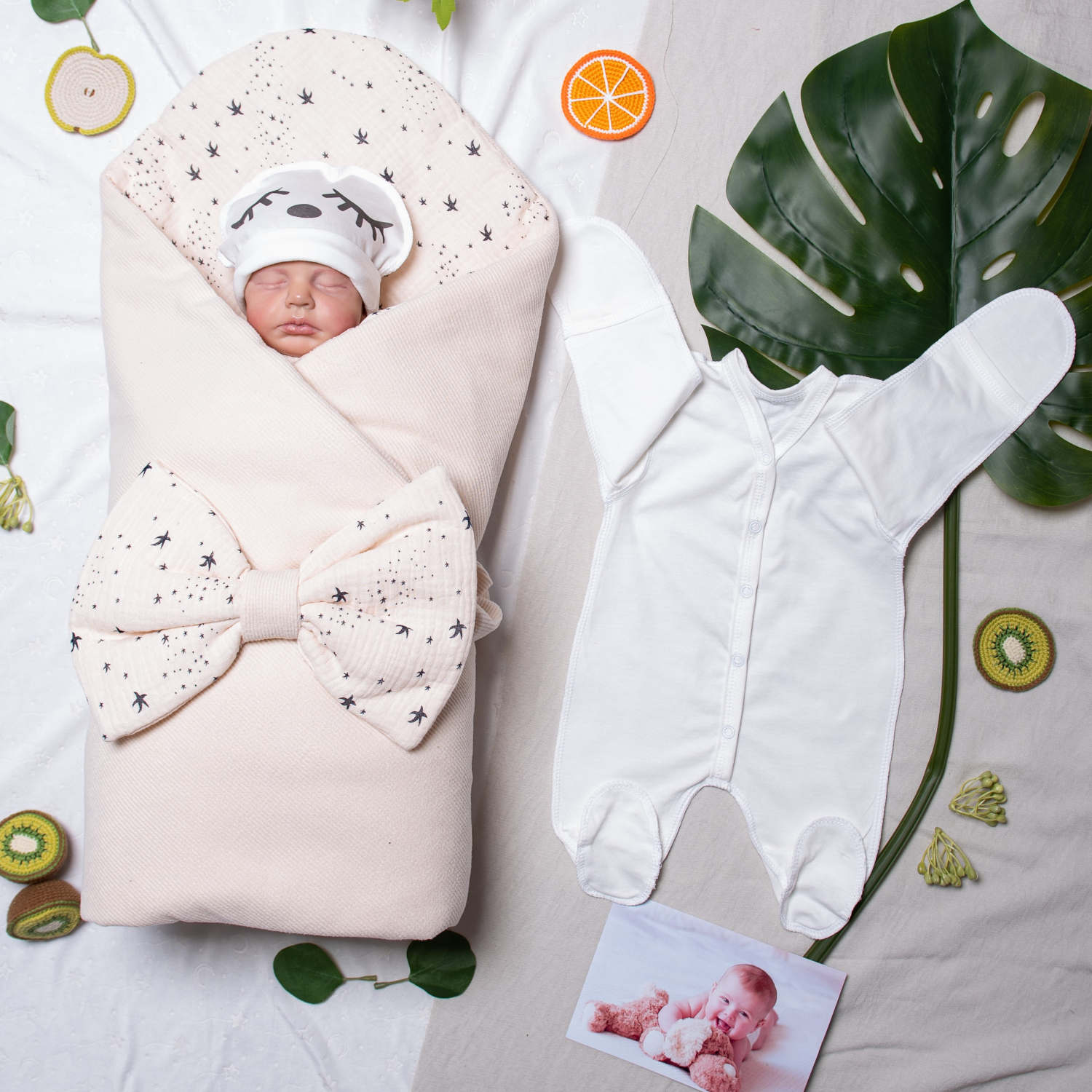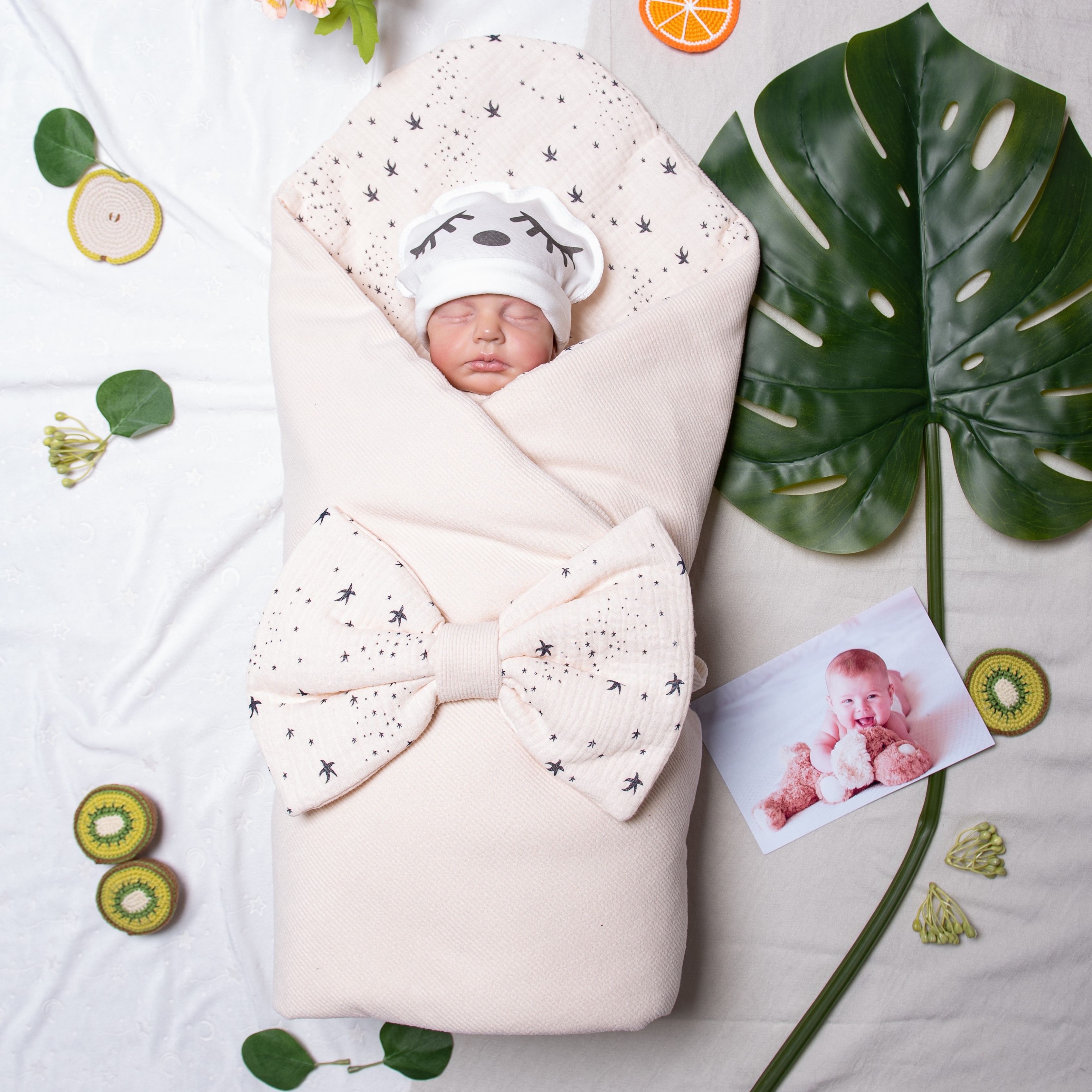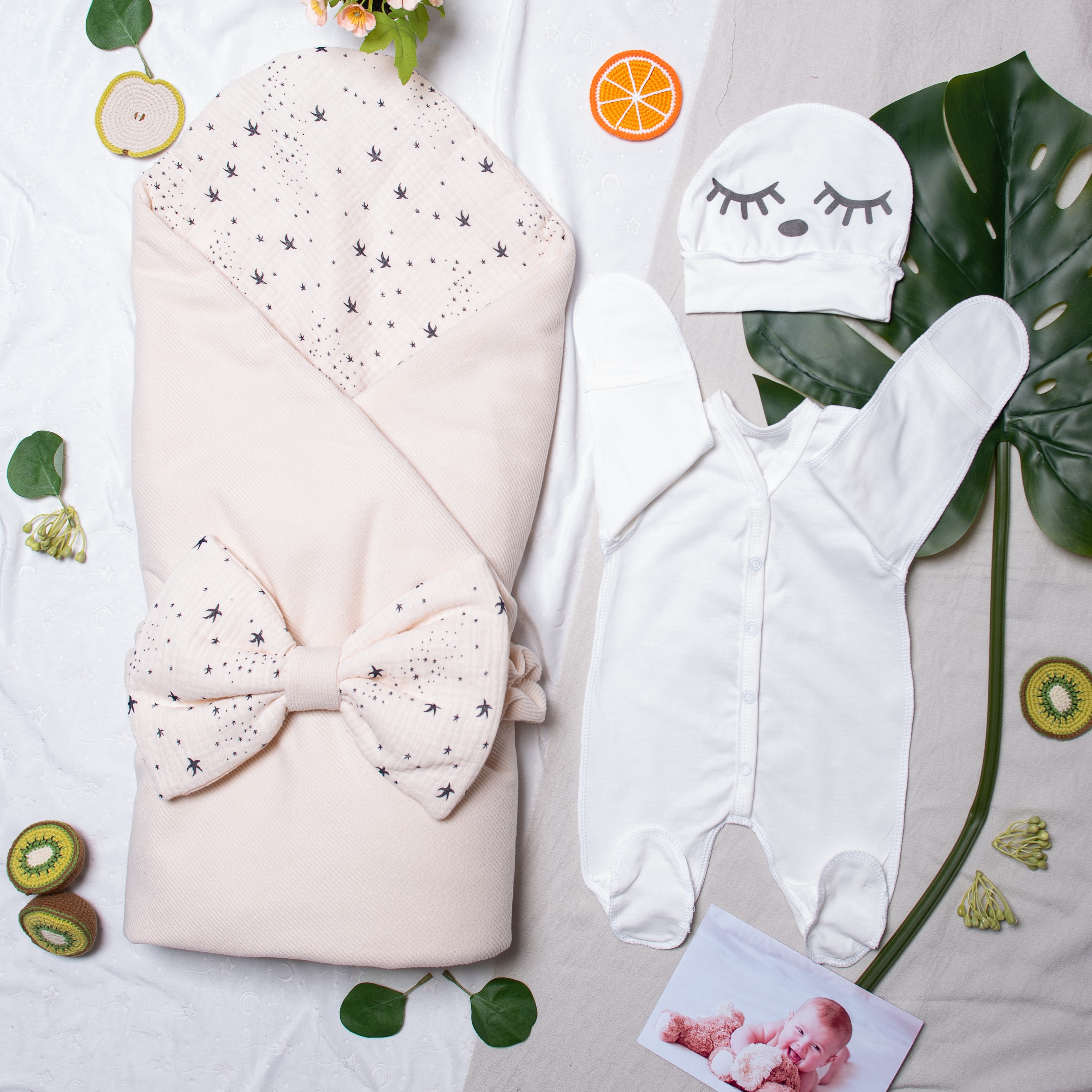 Комплект в роддом из трикотажного полотна лапша, внутри воздушный муслин в звездочку и тонкий слой холстона (100 гр на м кв),