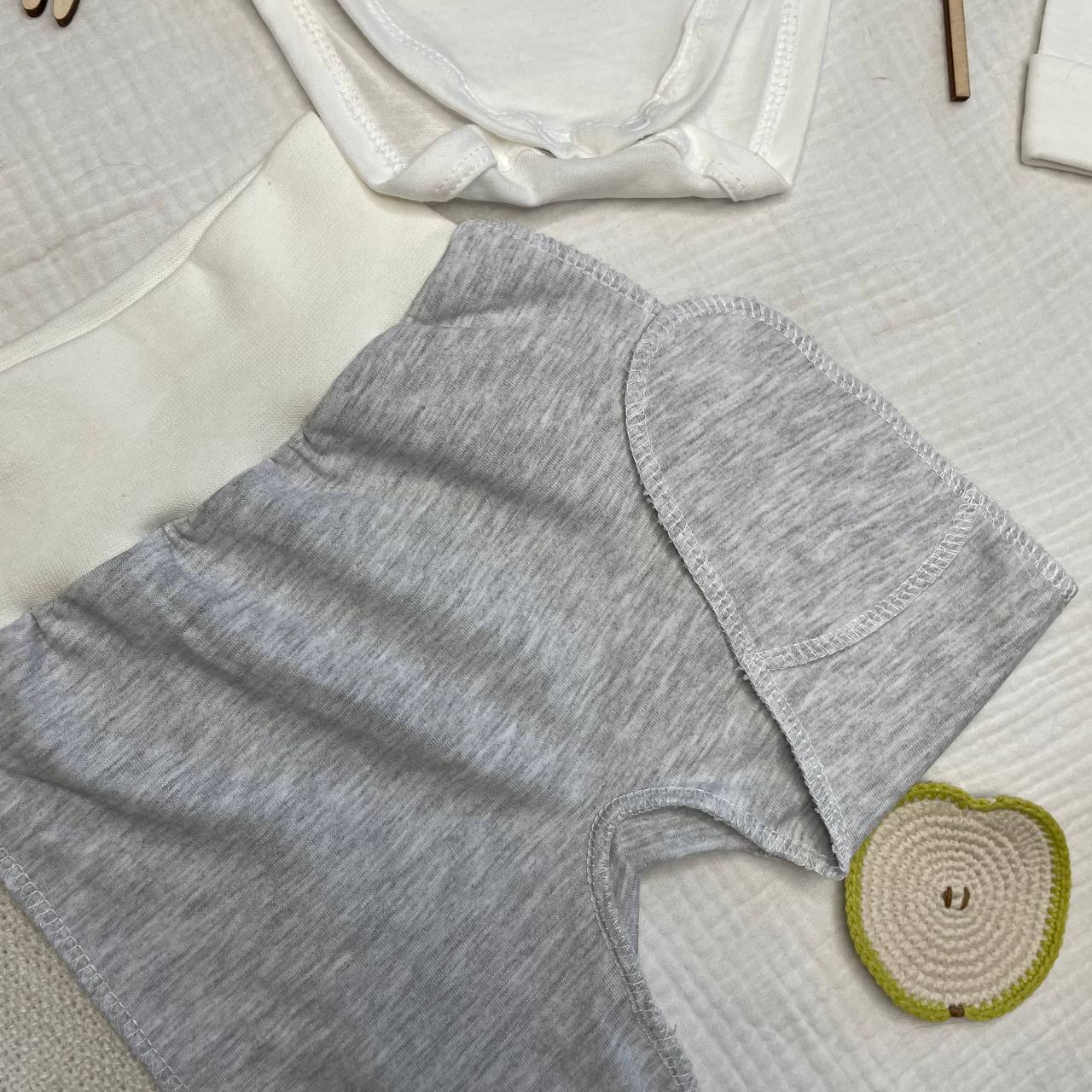 Ползунки светло-серые , швы наружу размер на рост 56см (кулирный трикотаж, хлопок 100%)