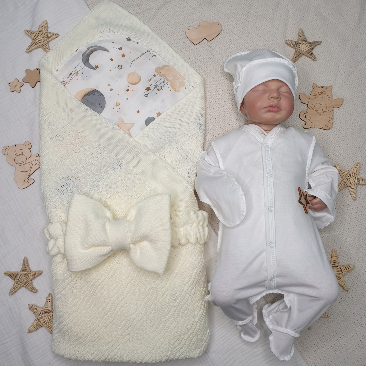 Комплект на выписку "Звездное небо", молочный.