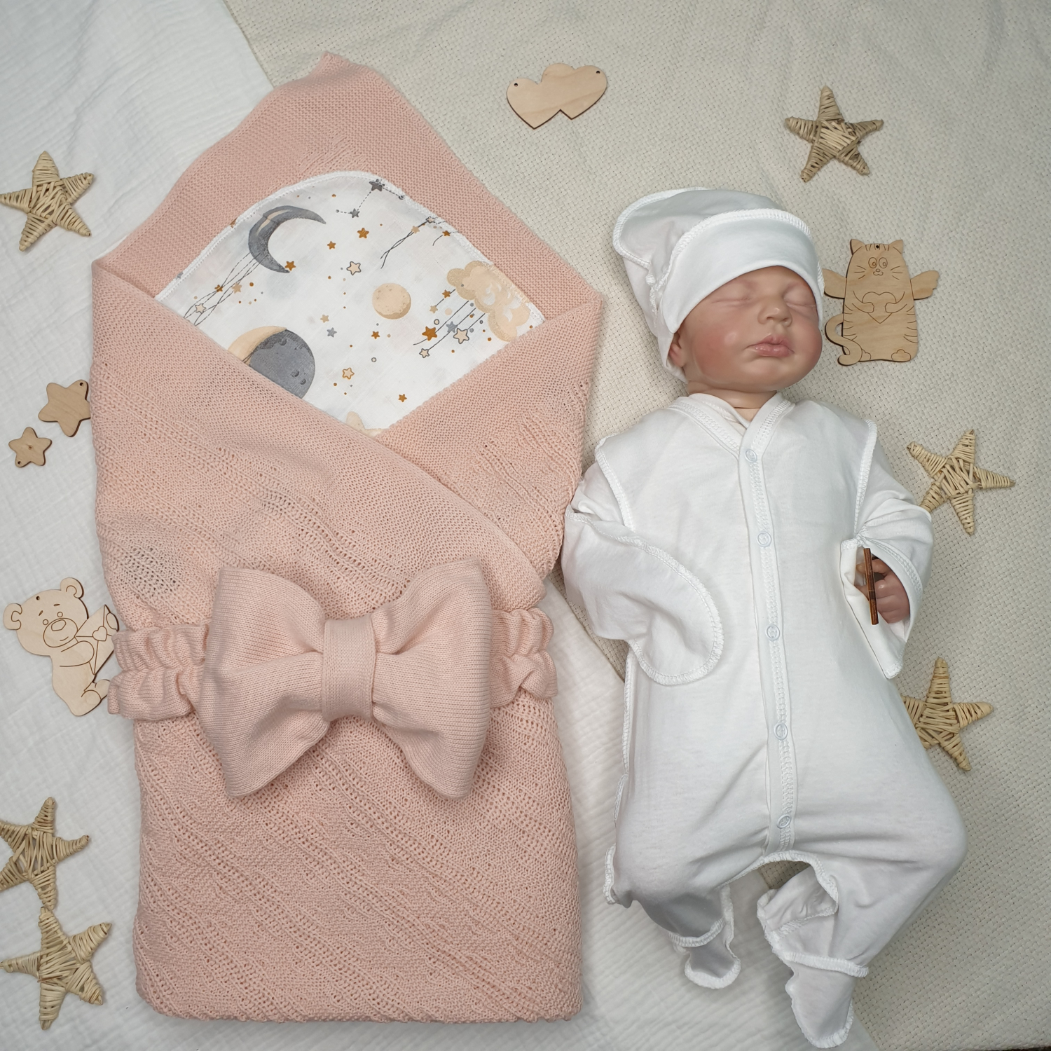 Комплект в роддом из вязанного пледа, цвета пудры.