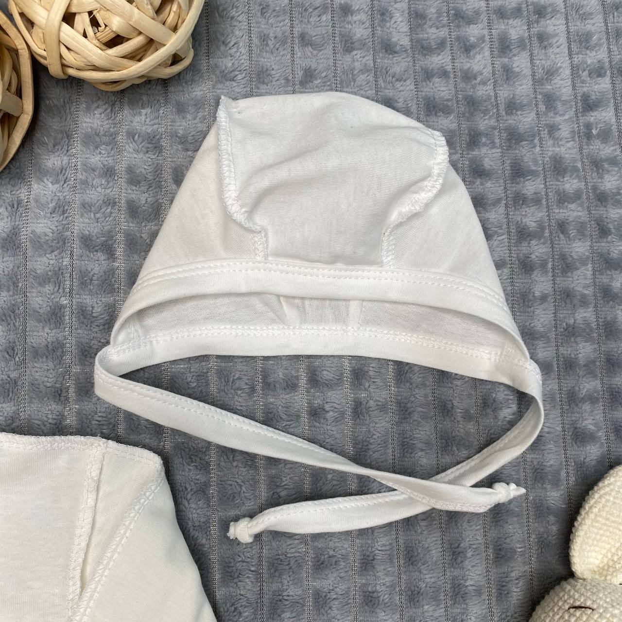 2. Чепчик на завязках хорошо сидит на головке, защищая от поддувания